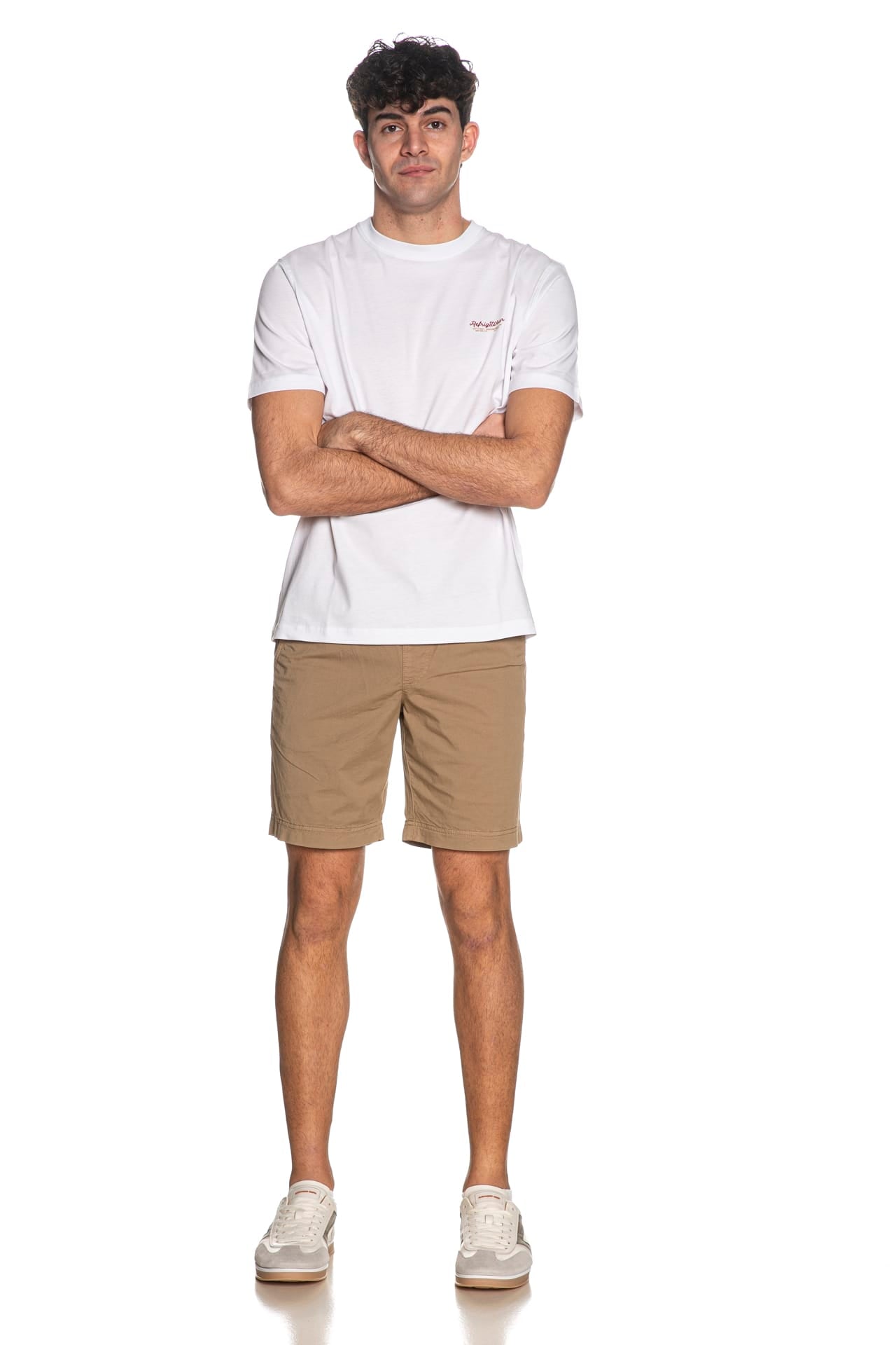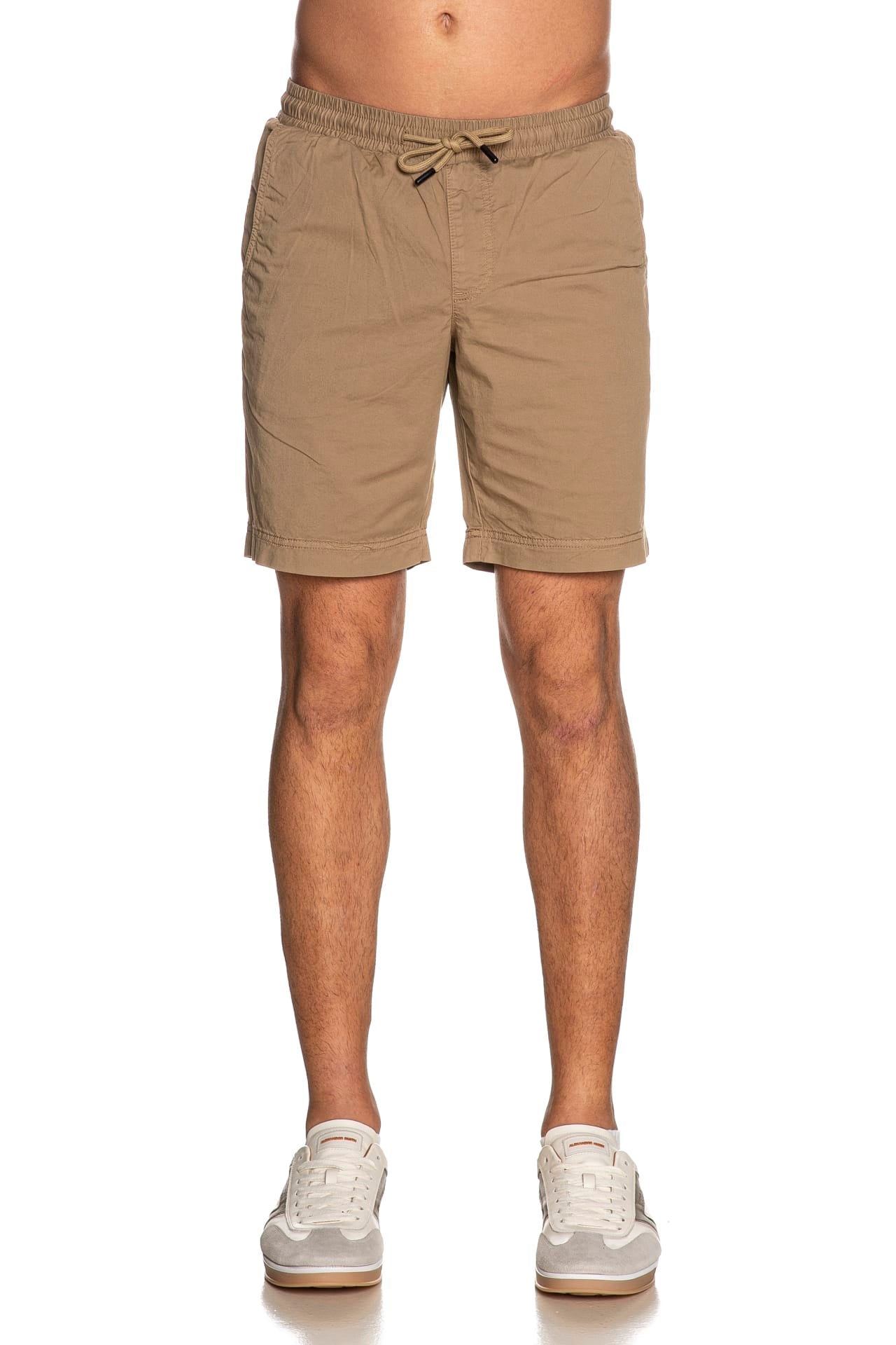 Bermuda Refrigiwear Naro da uomo in twill di cotone stretch sottoposto a trattamento per un aspetto leggermente vintage, modello jogger chino, con elastico e coulisse in vita, finta patta cucita, tasche alla carrettiera e tasche posteriori applicate con piccolo tag logo in tessuto cucito su un lato
