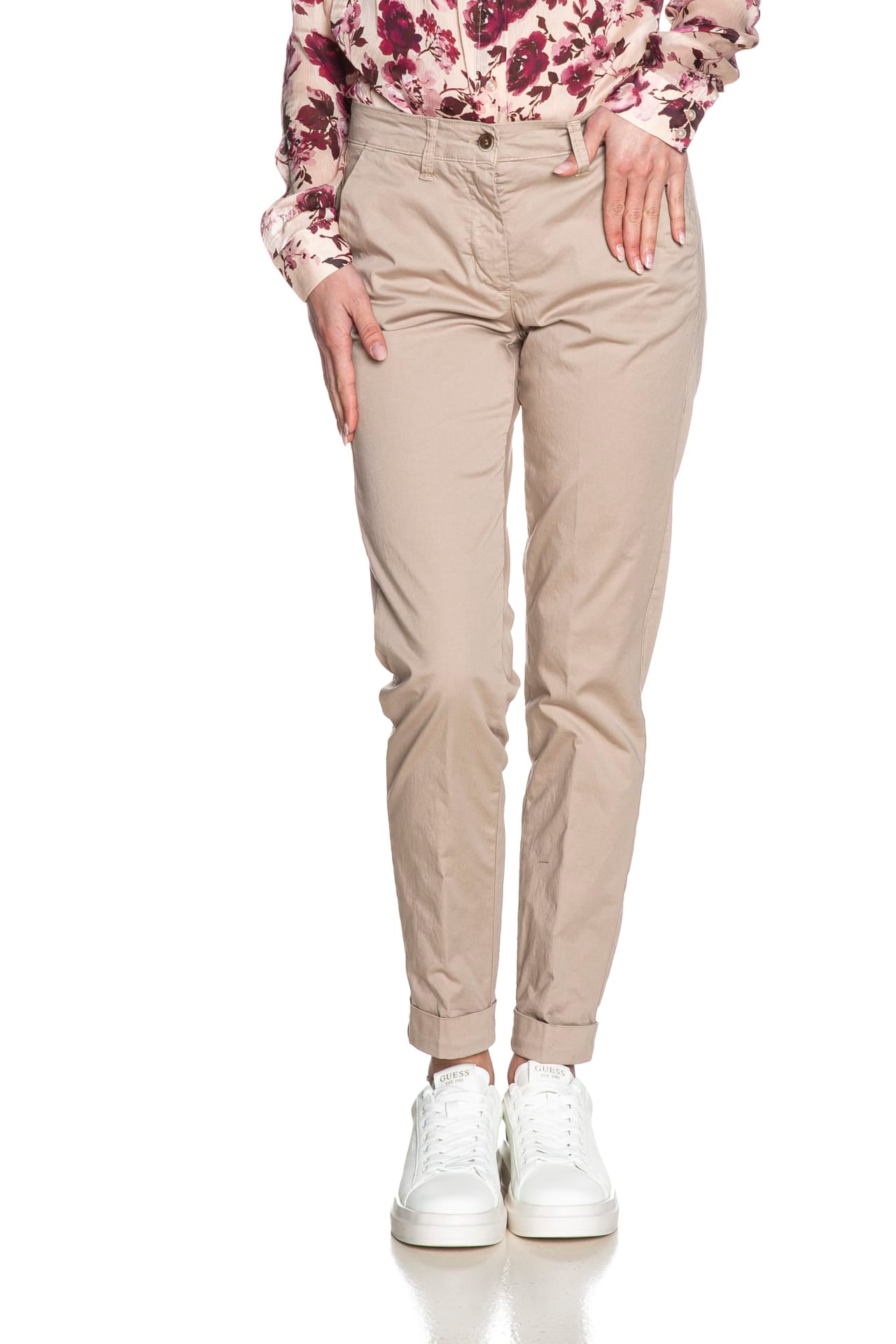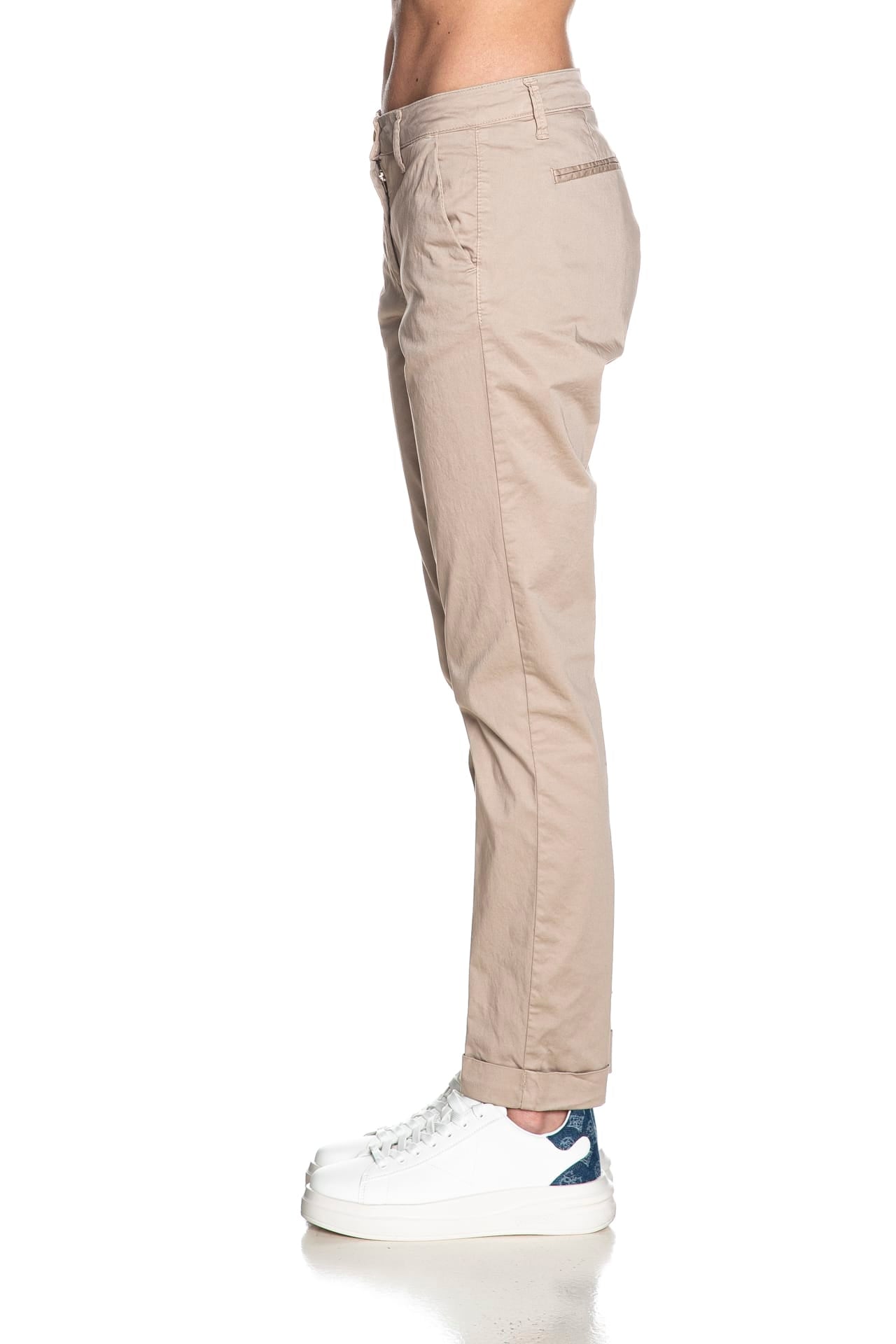 Pantalone Squad2 Napoli D da donna in tessuto a navetta stretch di cotone, modello chino, con tasche america laterali, a filo poteriori, chiusura zip a scomparsa con bottone e risvolto a fondo gamba.
