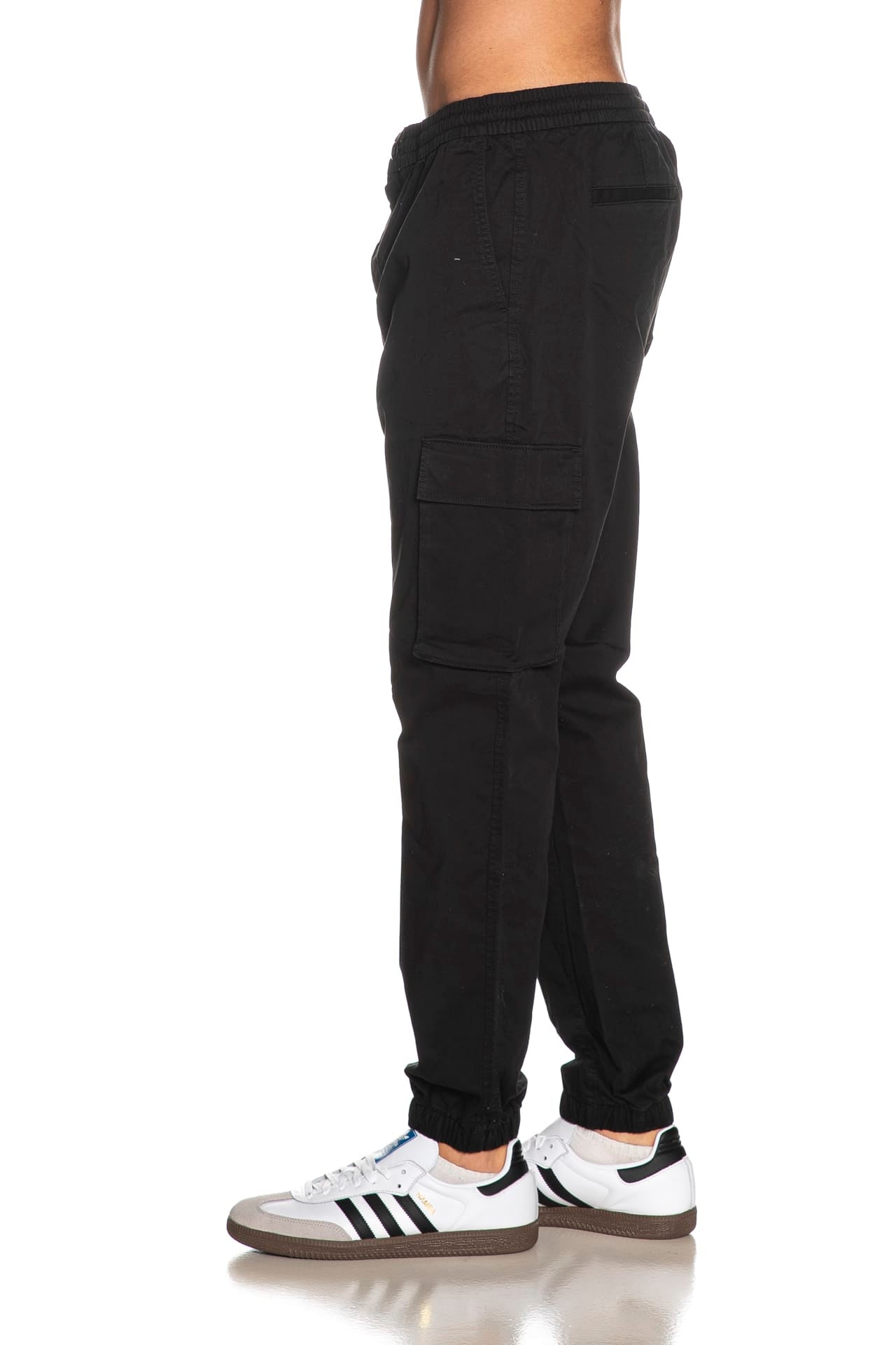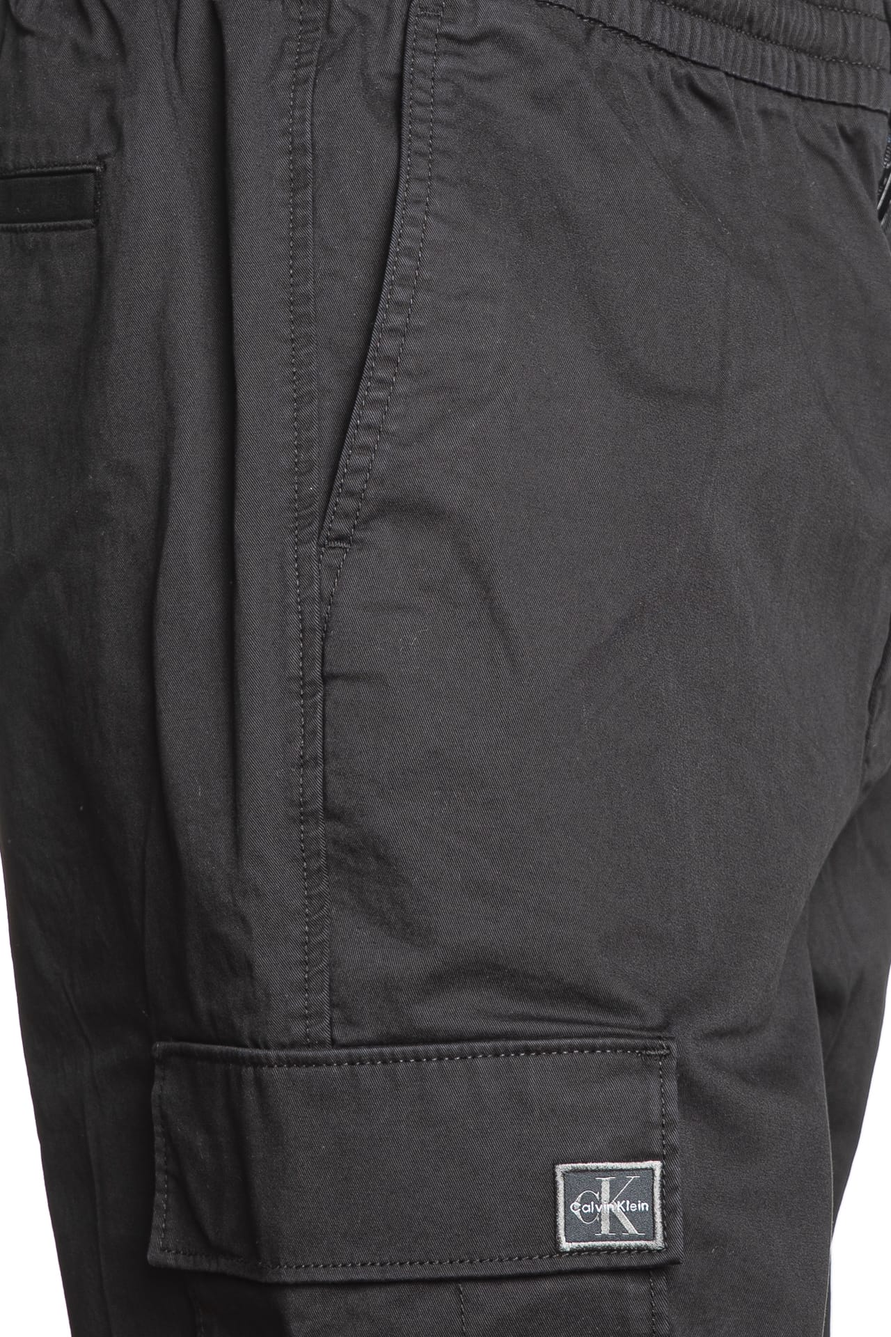 Pantalone Calvin Klein Sk El Ctt Crg da uomo in twill di cotone stretch, modello cargo taglio chino skinny fit, con chiusura zip ed elastico in vita, tasche america, tasconi laterali con patta, tasche posteriori a filo e gamba con polsino elastico