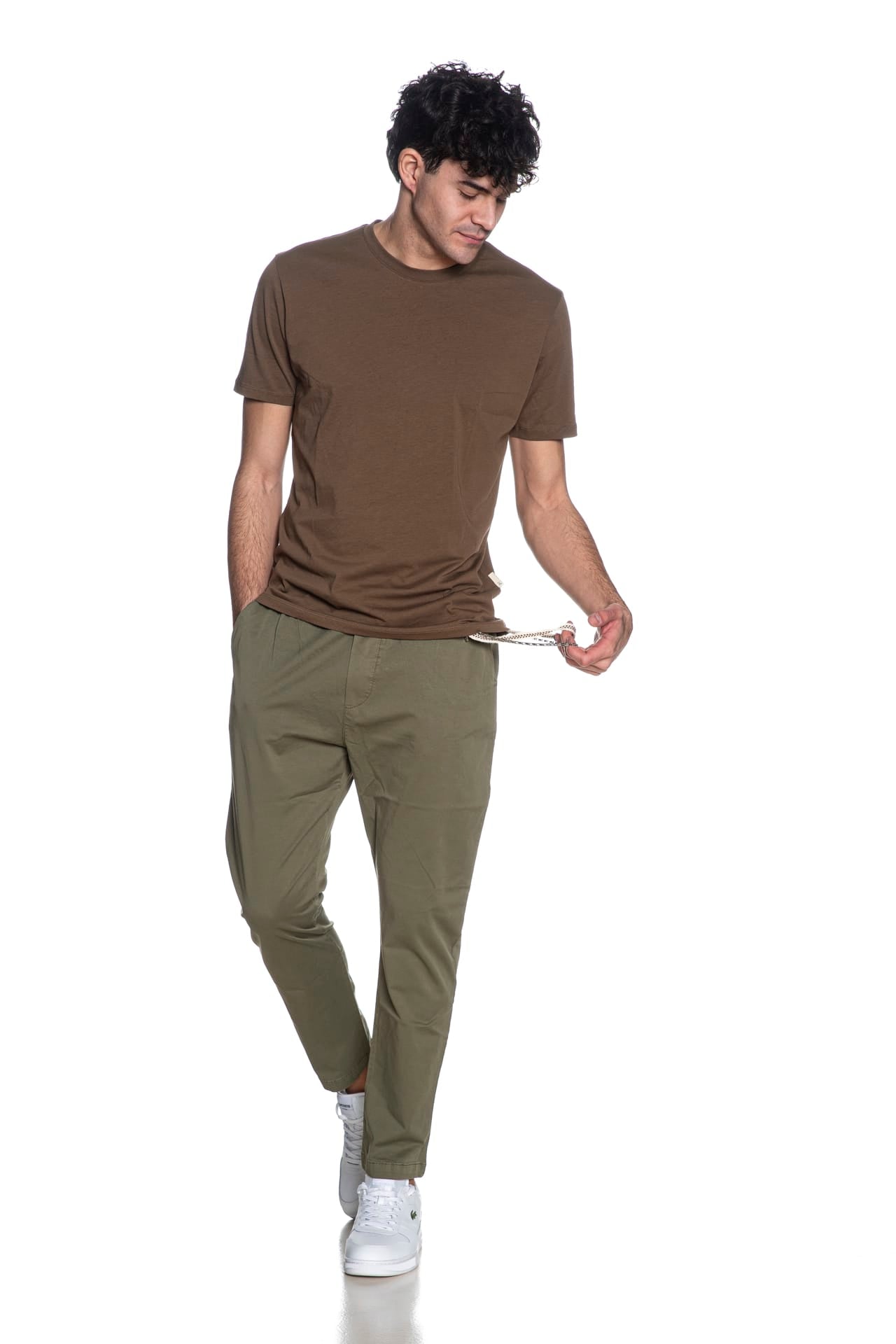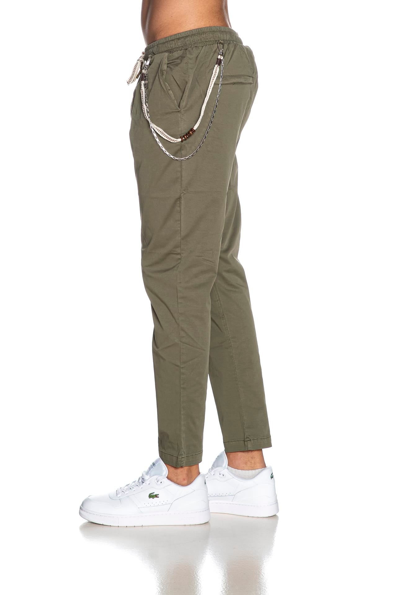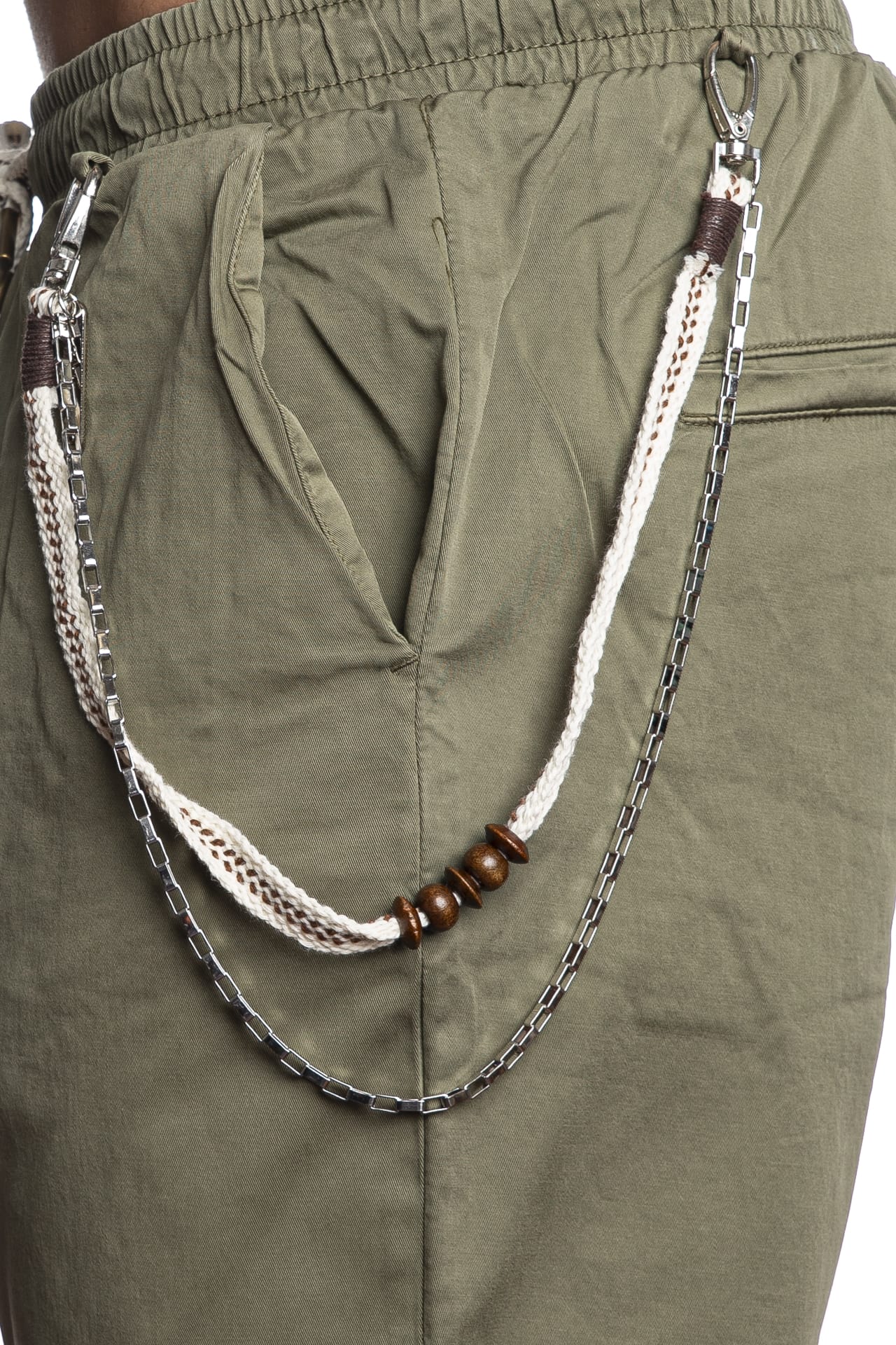 Pantalone Gianni Lupo Leonard da uomo in twill di cotone stretch, modello chino con elastico e coulisse in vita regolabile da maxi stringa intrecciata multicolor, finta patta cucita, tasche america anteriori e a filo posteriori