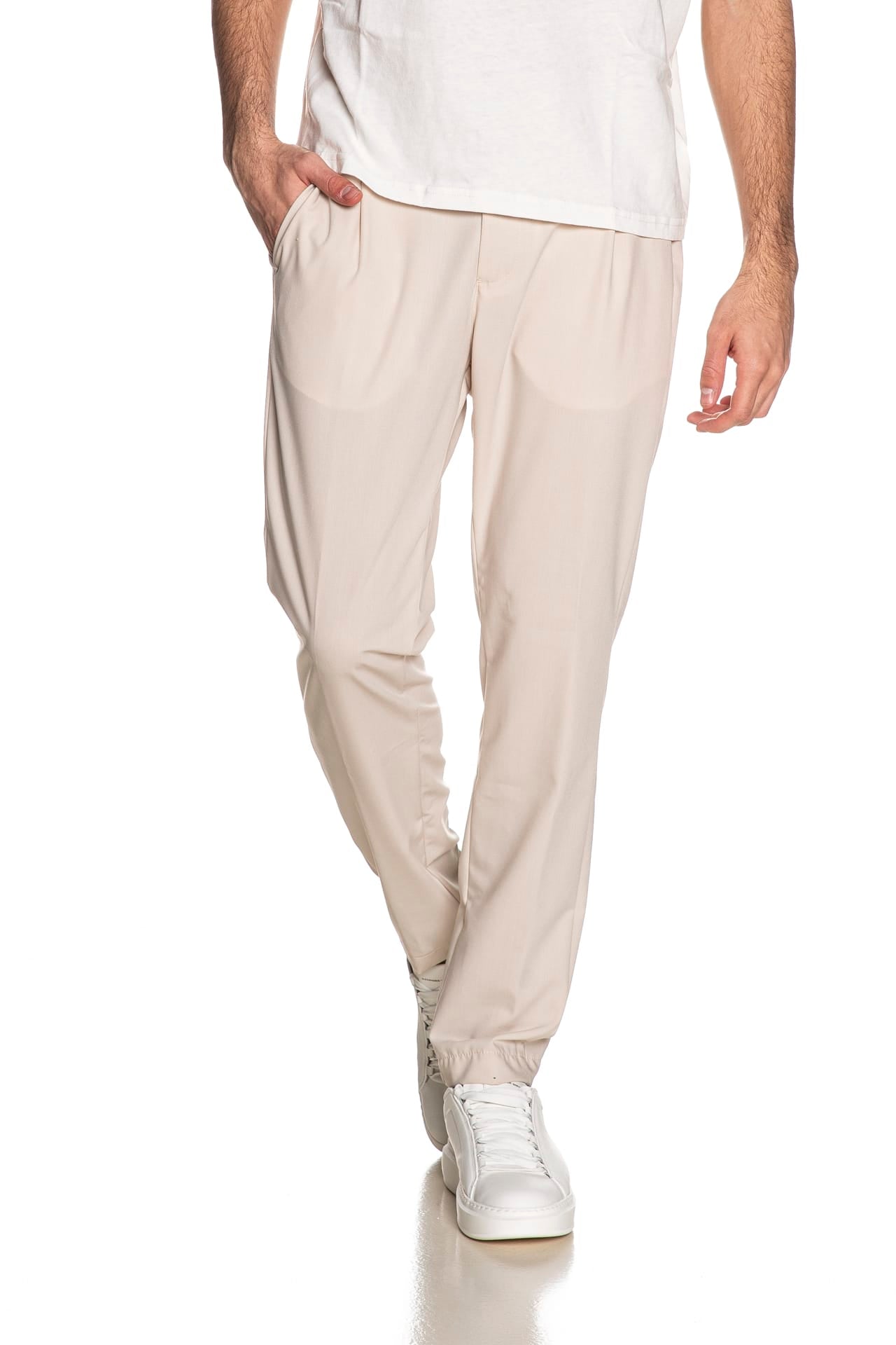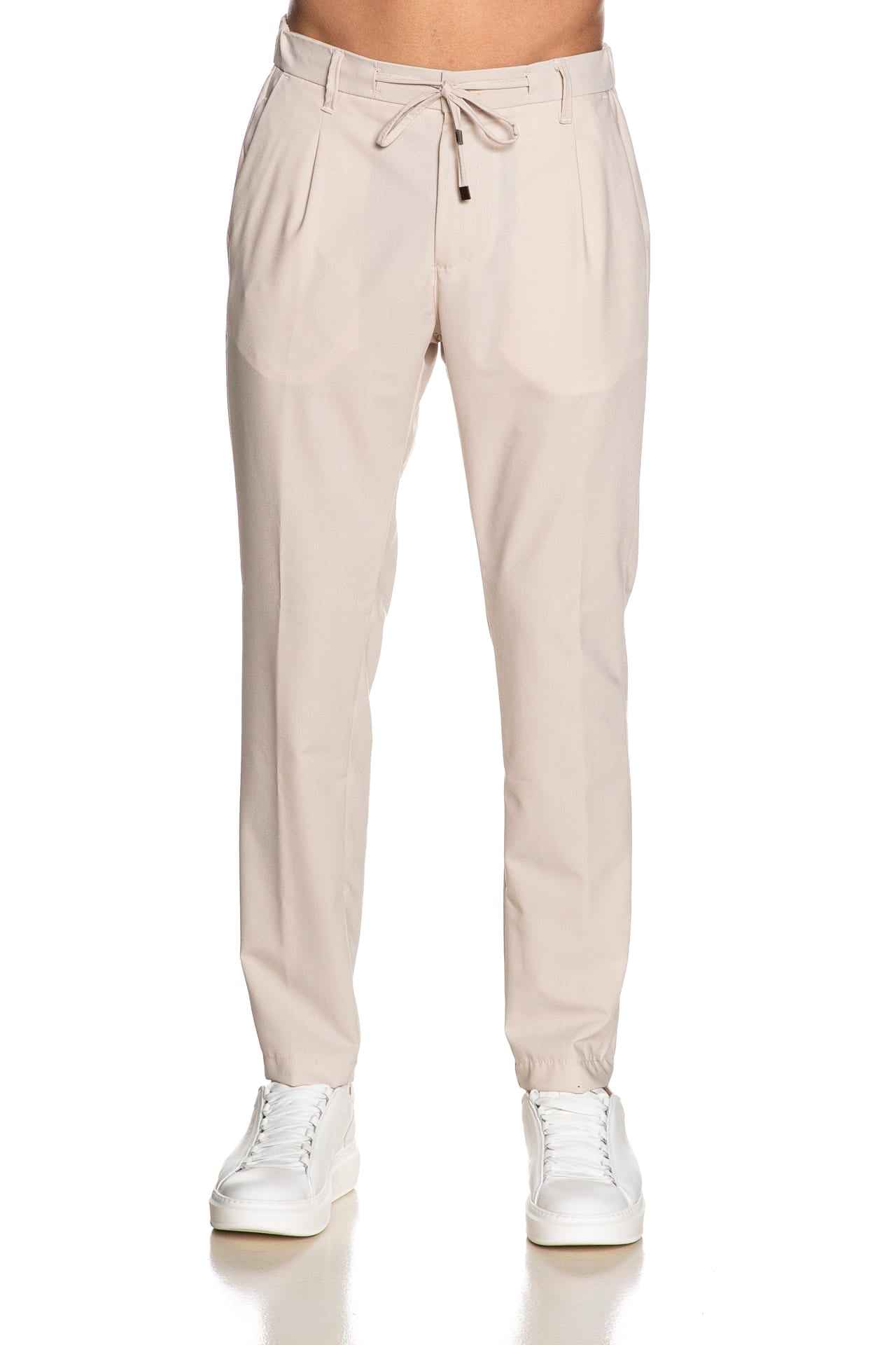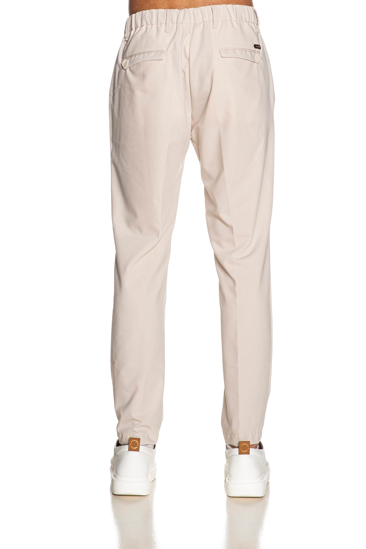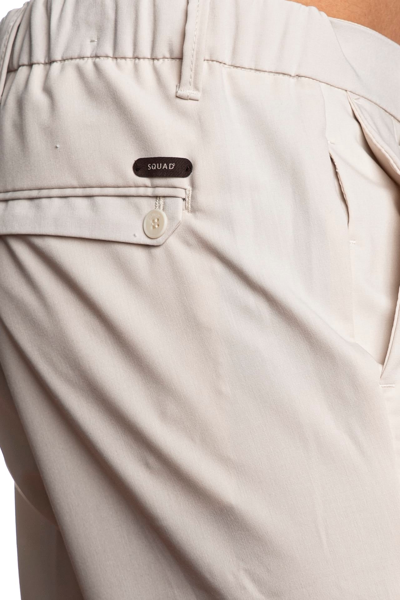 Pantalone Squad2 Desica da uomo in leggero tessuto di poliviscosa, modello chino panta laccio, con chiusura zip a scomparsa, elastico posteriore e coulisse in vita, pinces, tasche america anteriori e a filo con pattina e bottone posteriori e micro placchetta logo cucita sul retro