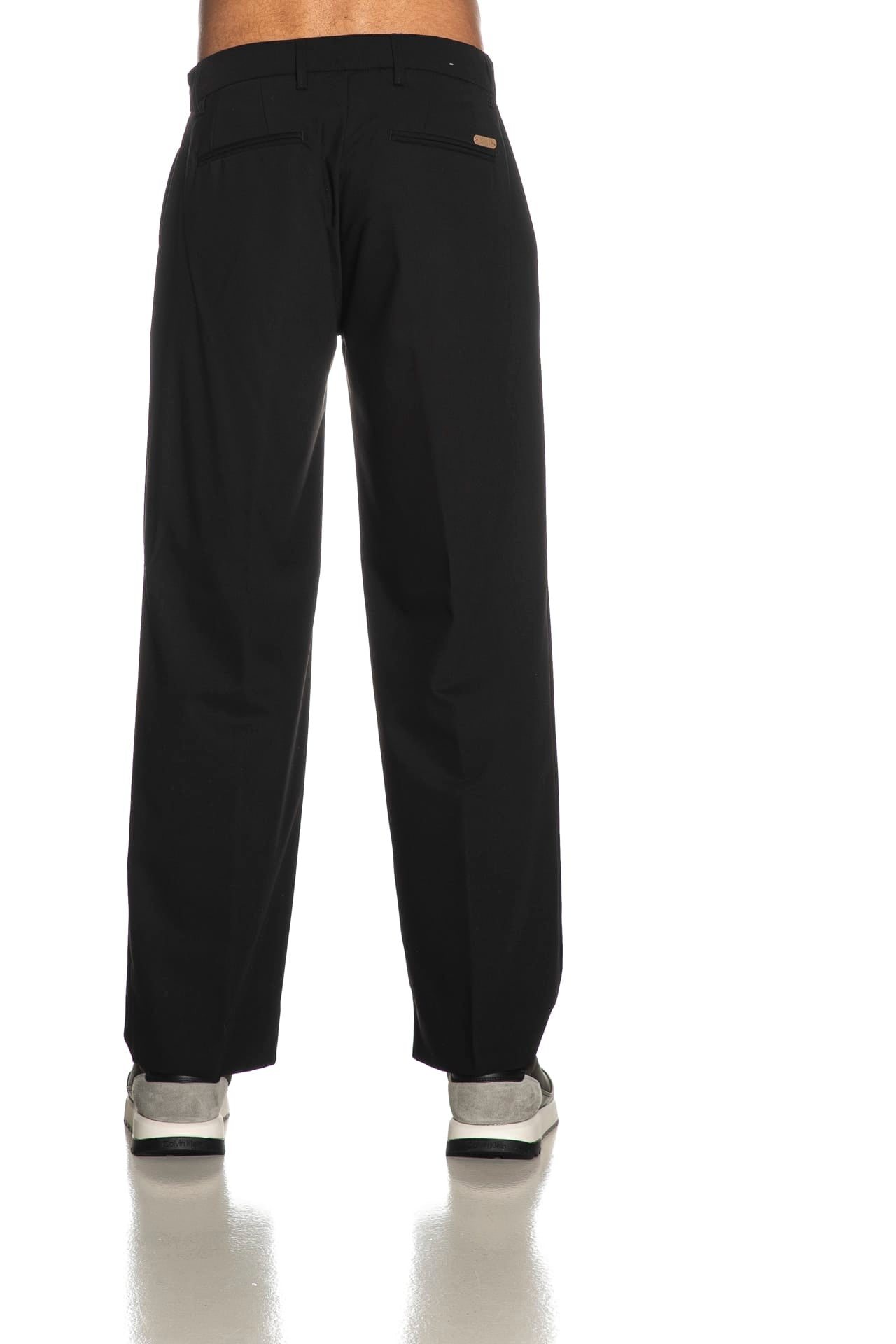 Pantalone Squad2 Genny da uomo in tessuto di poliviscosa stretch, modello chino baggy fit, con chiusura zip, bottoni e gancetto a slitta, pinces e mini etichetta logo applicata sopra una delle due tasche a filo posteriori