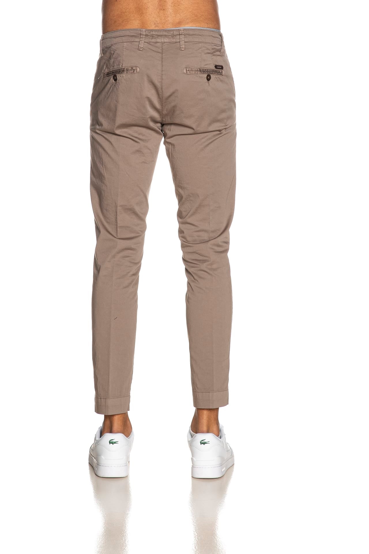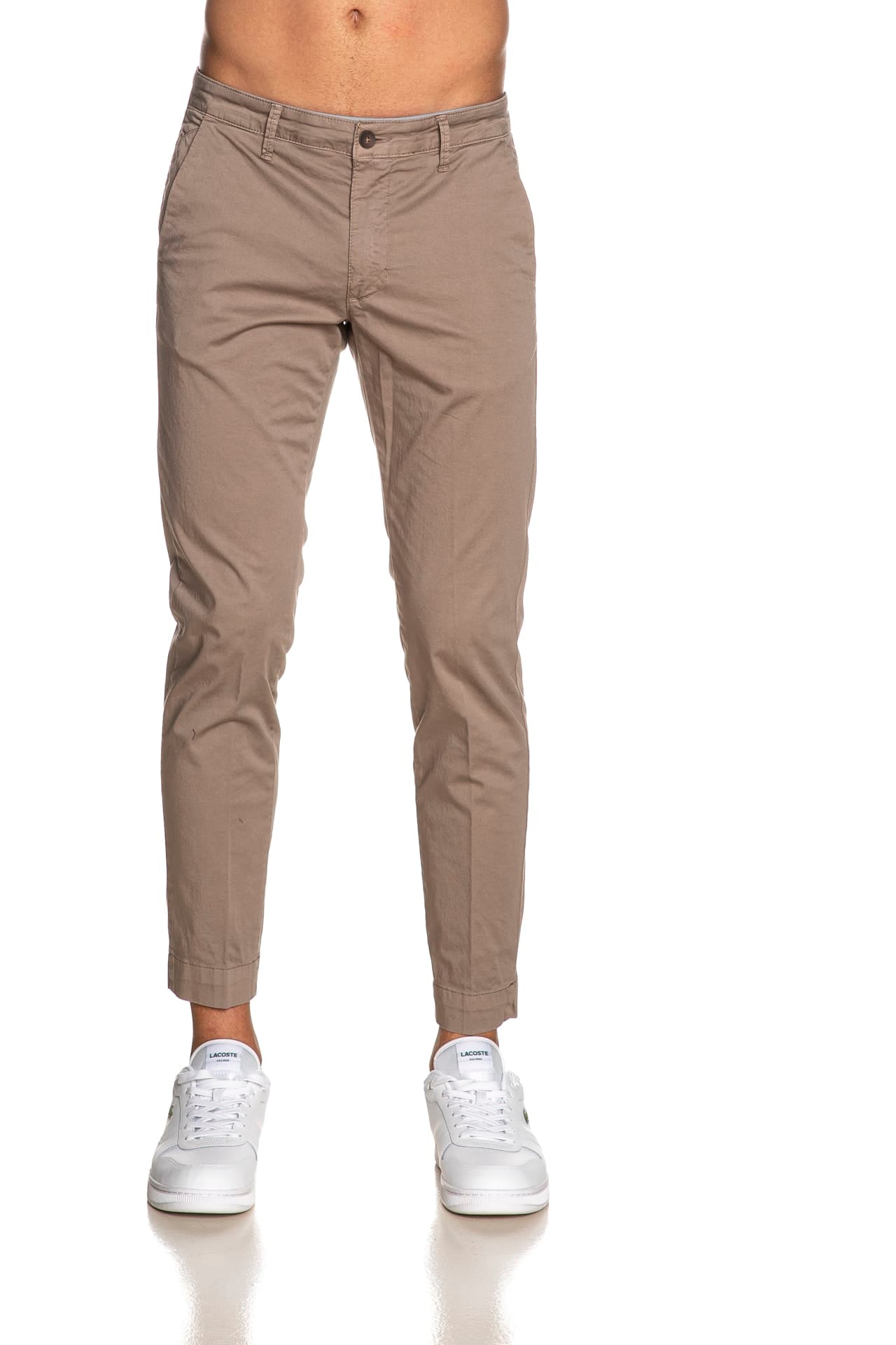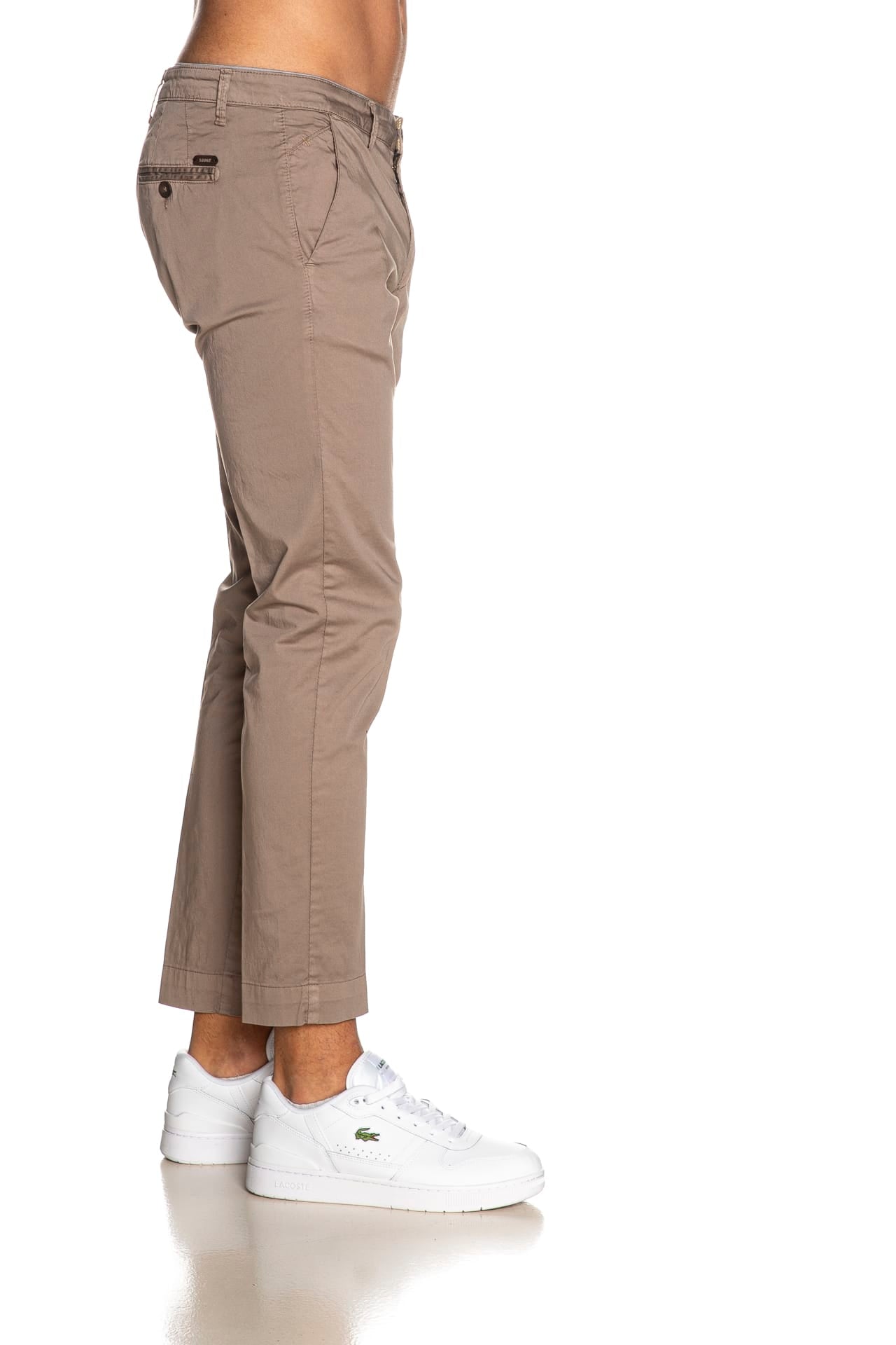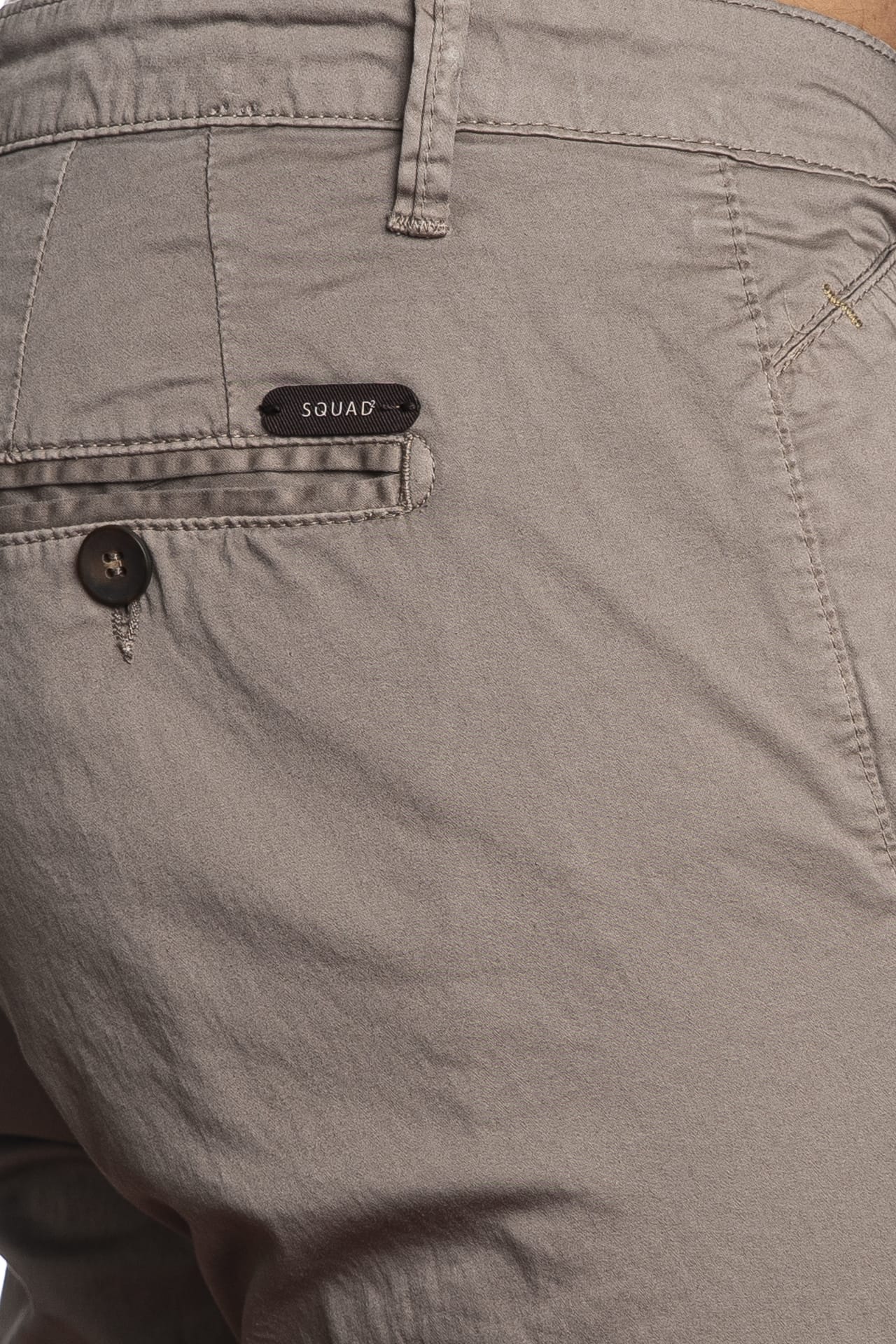 Pantalone Squad2 Napoli da uomo in rasatello elasticizzato di cotone, modello chino slim fit, con chiusura zip a scomparsa, tasche america frontali, a filo con bottone posteriori, taschino portamonete inclinato e piccola etichetta logo in tessuto applicata sul retro
