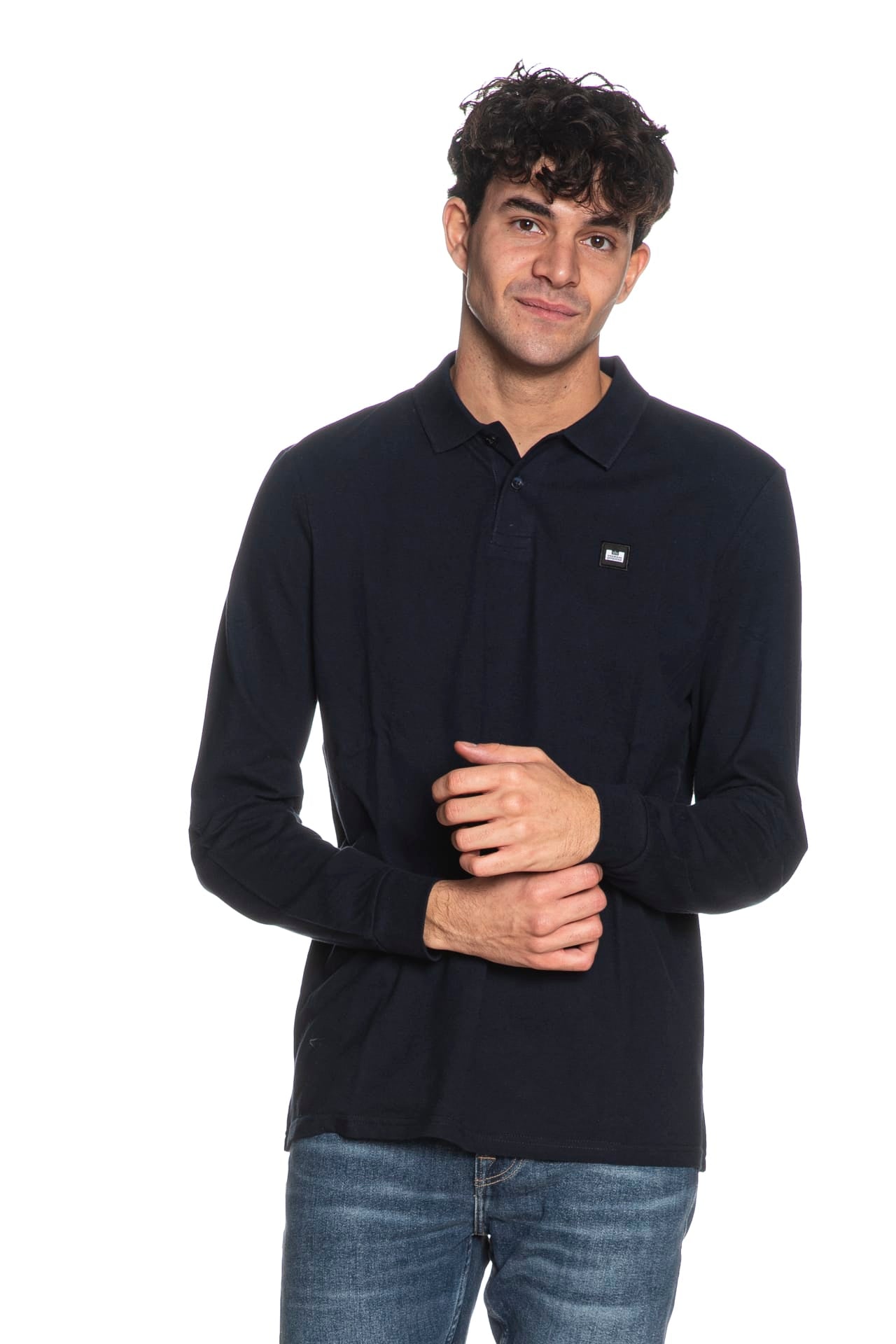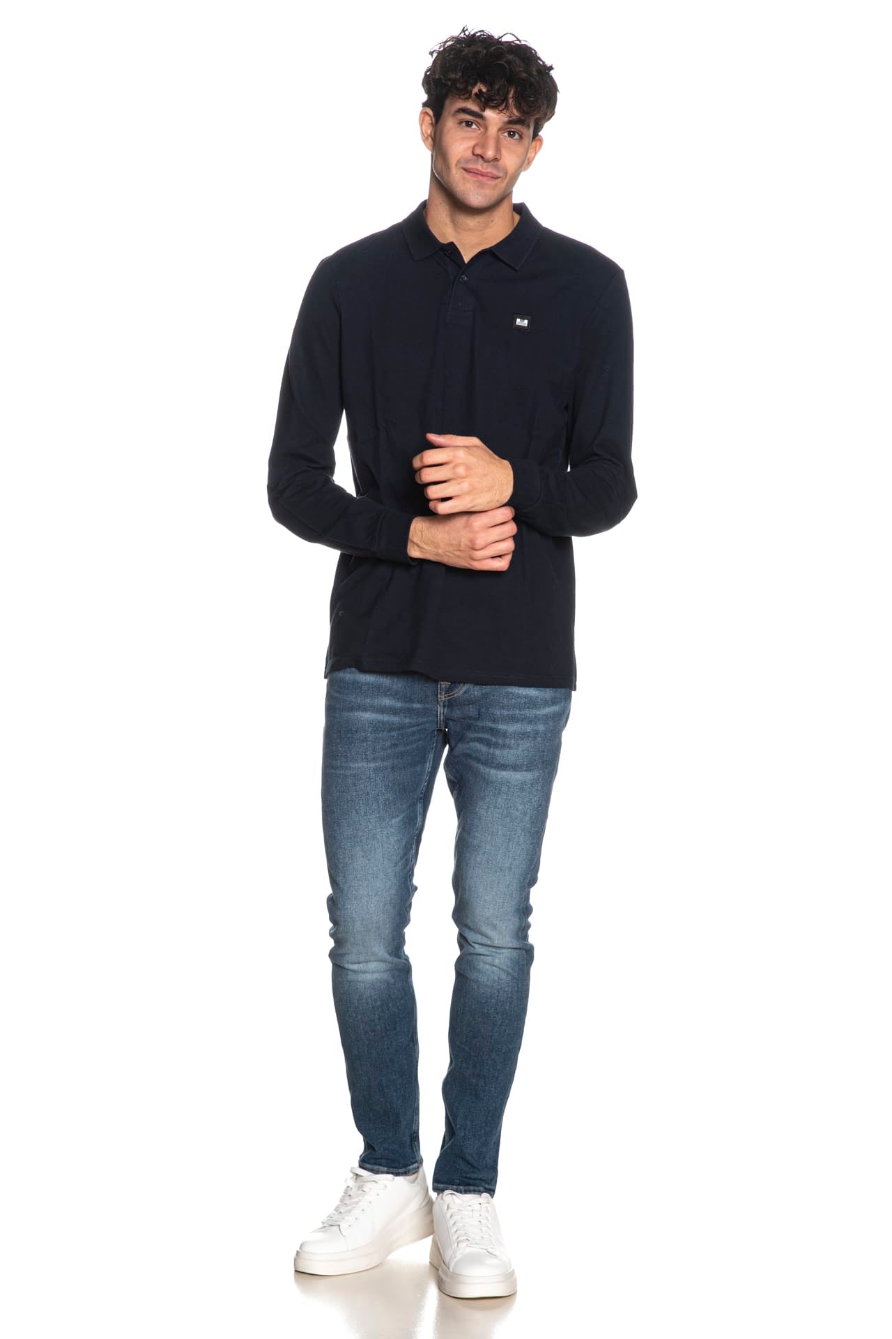 Polo Weekend Offender Dice da uomo in piquet di cotone, con colletto in maglia a costine, abbottonatura a due bottoni, piccolo monogramma istituzionale ricamato sul petto e manica lunga con polsino in jersey stretch