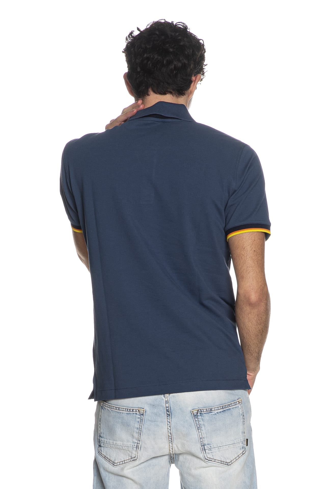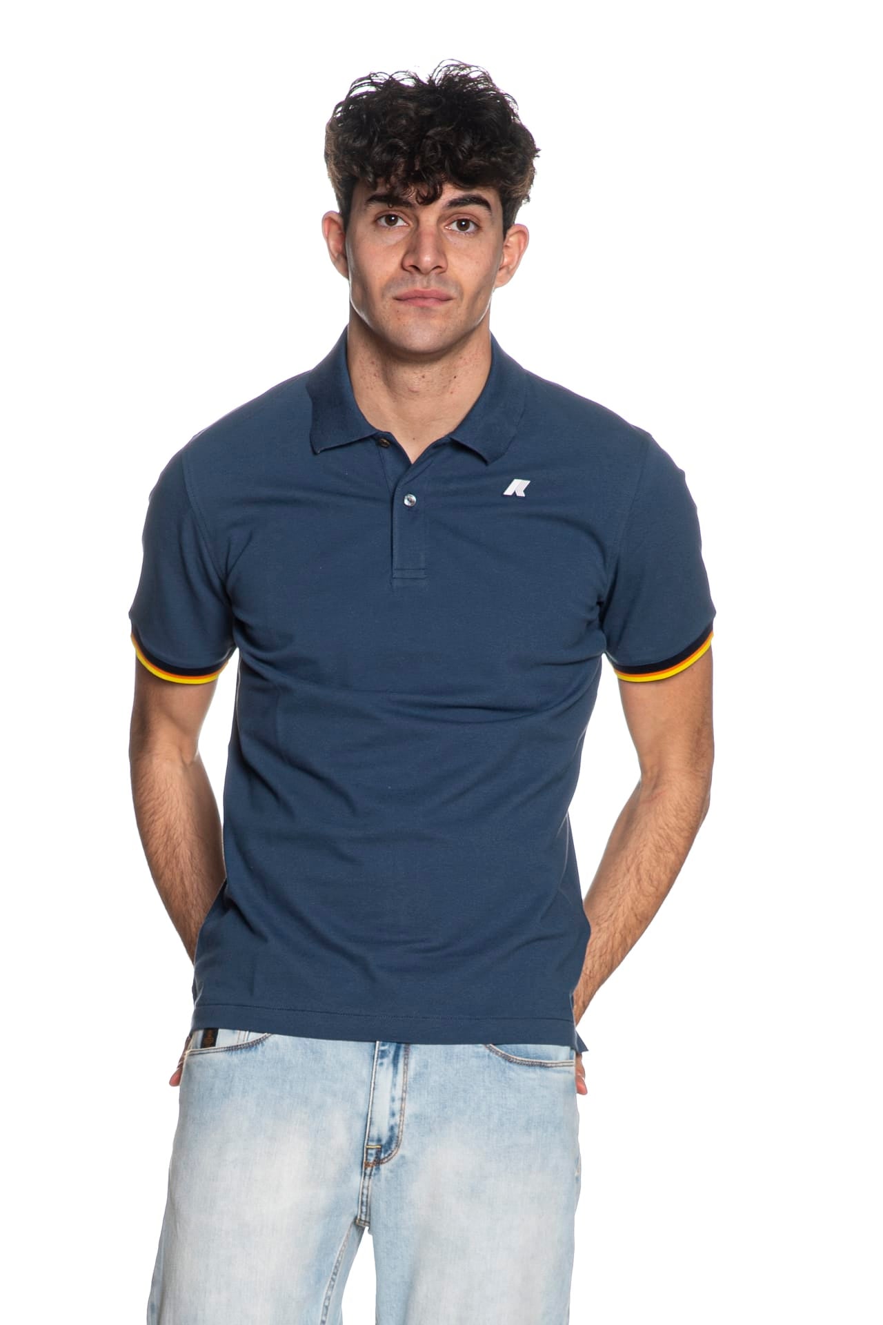 Polo K-Way Vincent da uomo in piquet di cotone, slim fit, con colletto in maglia, abbottonatura a due bottoni, sotto colletto e bordo della manica corta in filato a tre colori, piccolo logo siliconato bicolore applicato sul petto e spacchetti laterali sul fondo