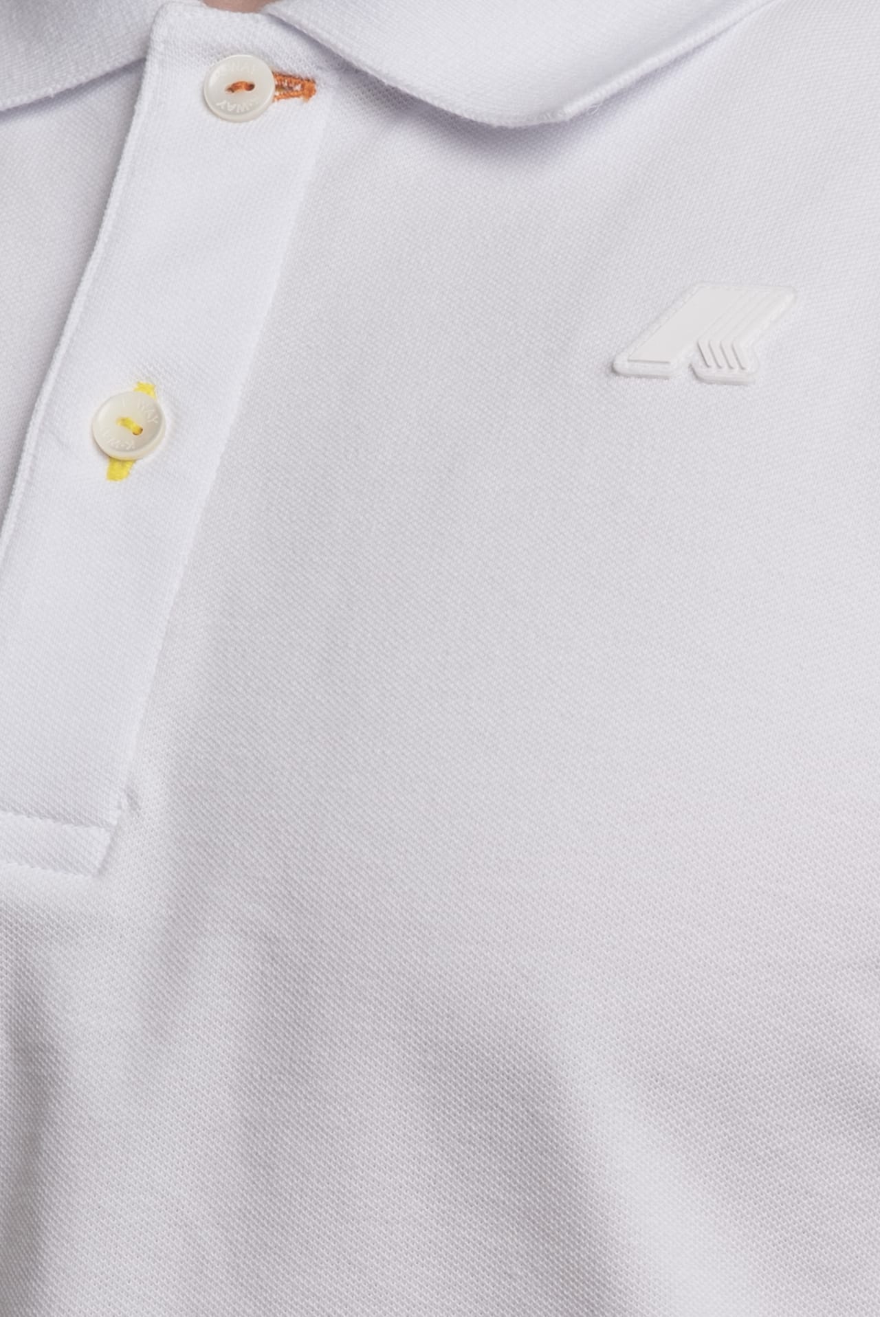 Polo K-Way Vinnie da uomo in piquet di cotone, slim fit, con colletto e polsini delle maniche corte in maglia a costine, abbottonatura a due bottoni con interno in filato a tre colori, piccolo logo siliconato tono su tono sul petto e spacchetti laterali sul fondo
