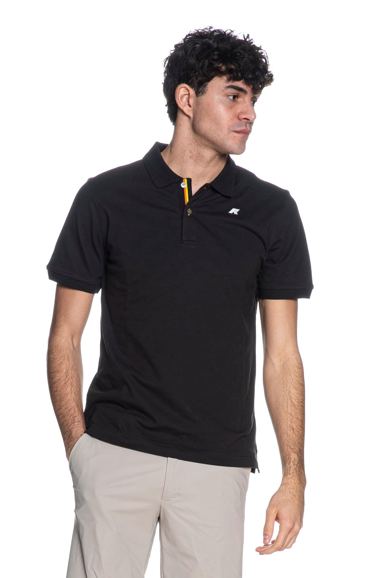 Polo K-Way Vinnie da uomo in piquet di cotone, slim fit, con colletto e polsini delle maniche corte in maglia a costine, abbottonatura a due bottoni con interno in filato a tre colori, piccolo logo siliconato tono su tono sul petto e spacchetti laterali sul fondo