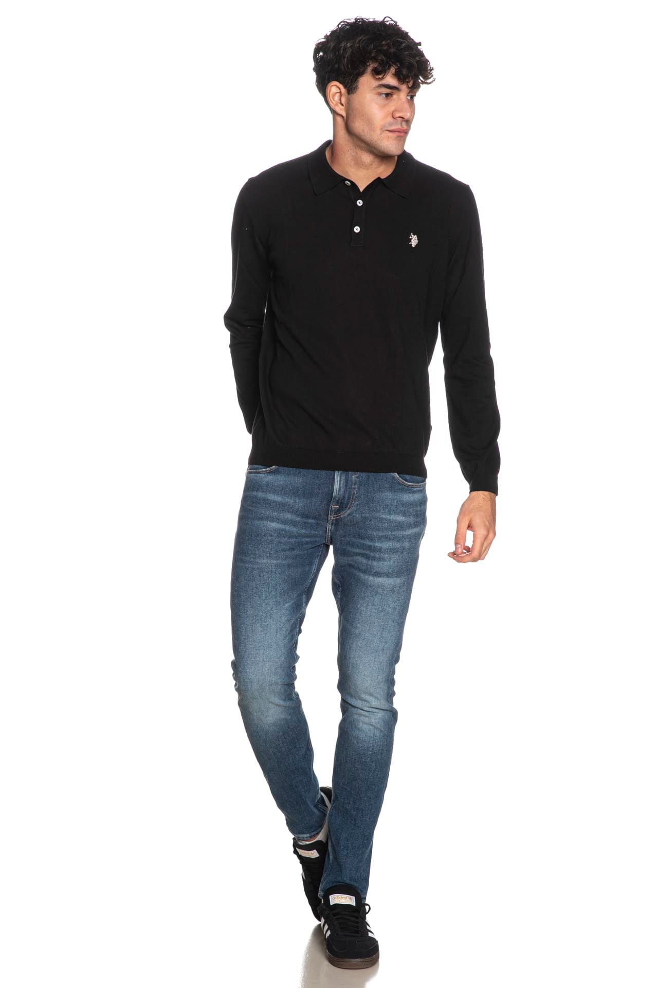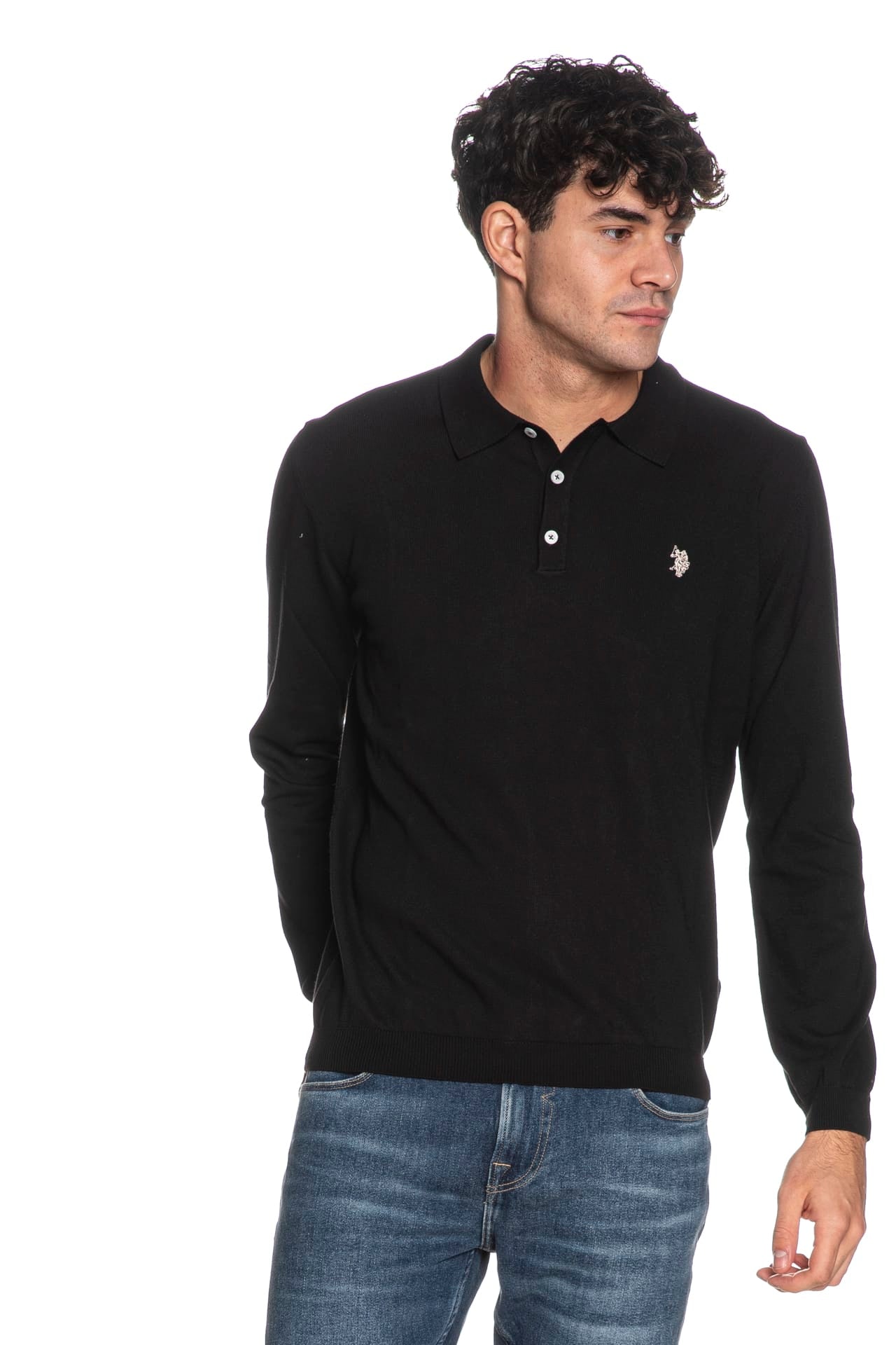 Polo U.S. Polo Assn Jaac da uomo in filato rasato di puro cotone, a tre bottoni, con colletto in maglia, piccolo monogramma ricamato a contrasto colore sul petto, manica lunga, polsini e cannolè a costine