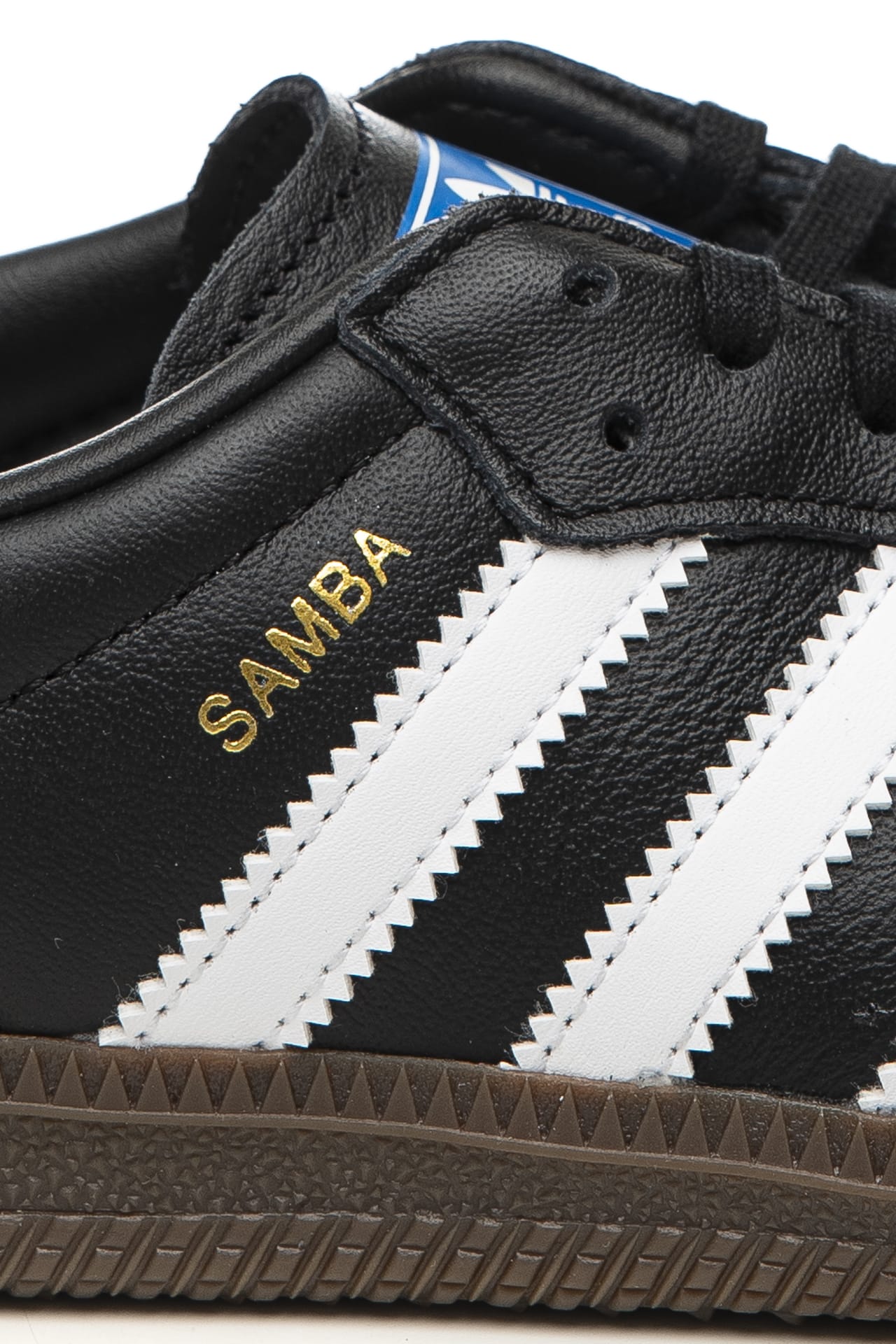 Scarpa Adidas Samba Og J Unisex da bambino in pelle, modello sneakers bassa dal design iconico di archivio, con allacciatura a stringhe, dettaglio a T sulla punta in suede strisce laterali seghettate e tallone superiore in pelle a contrasto colore, nome collezione in stampa laminata oro sul laterale esterno e suola in gomma naturale
