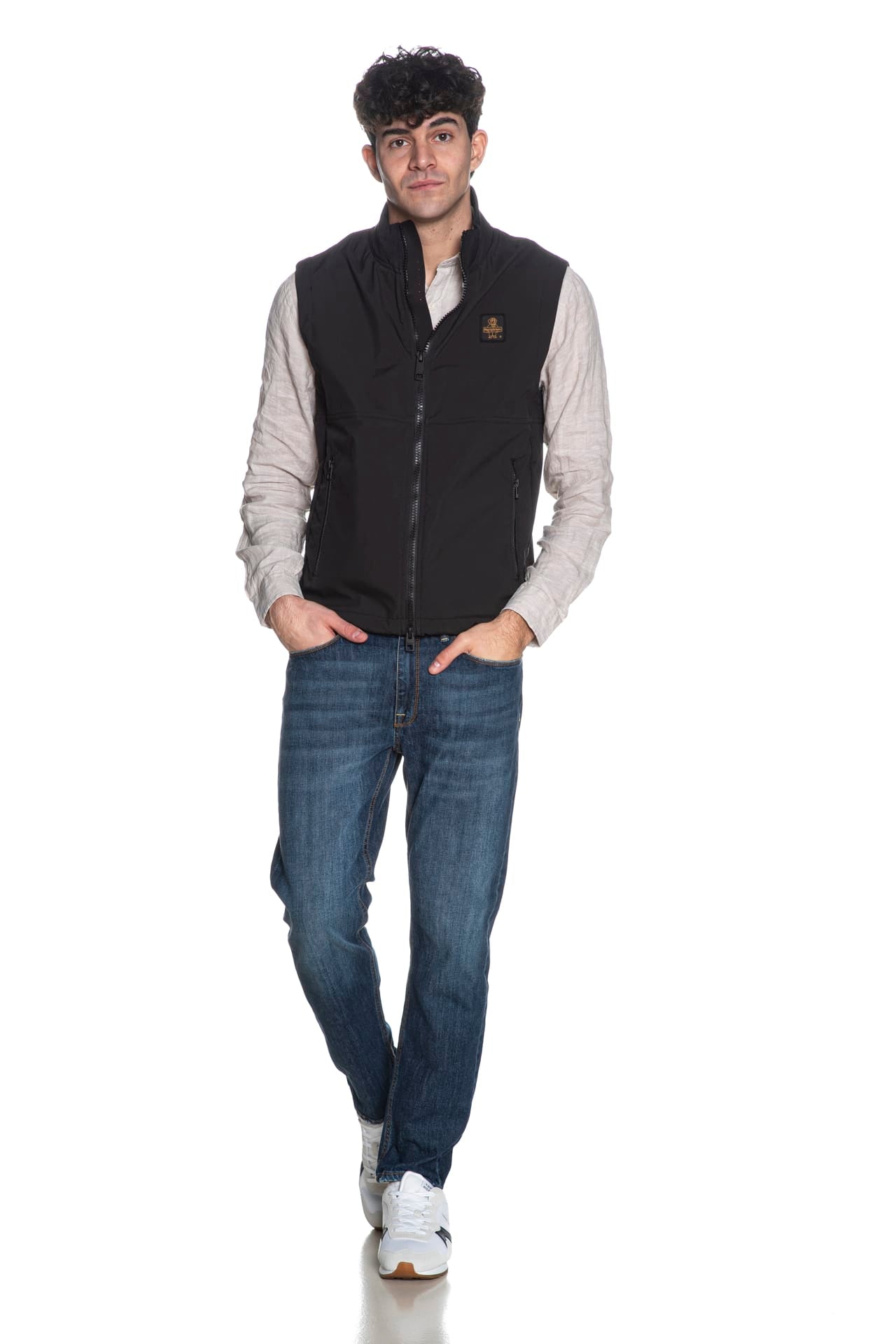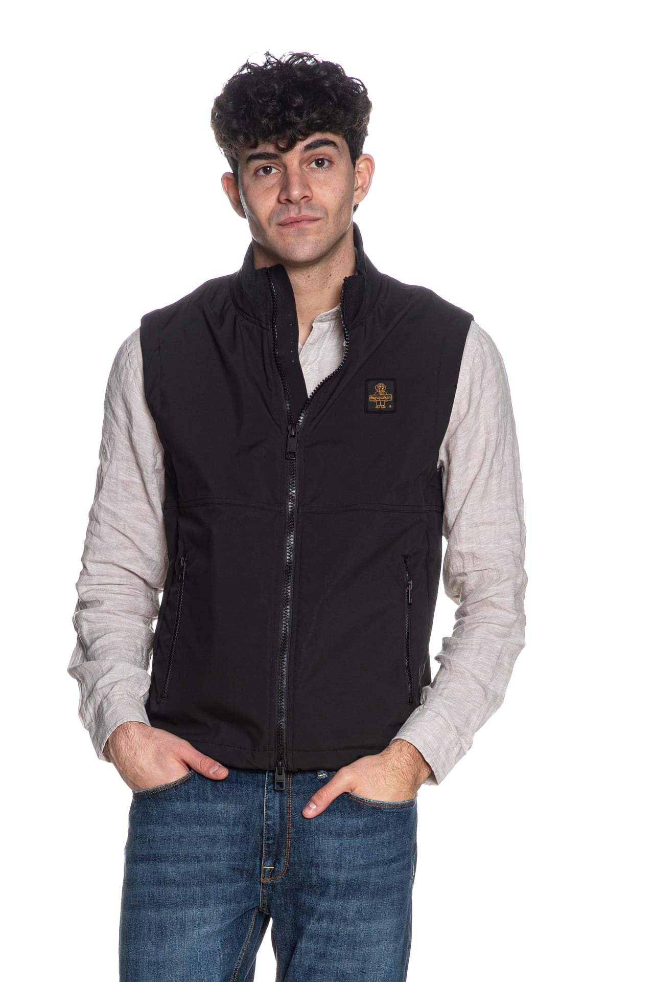 Smanicato Refrigiwear Eric Vest da uomo in soft shell antivento di poliestere stretch sottoposto a trattamento idrorepellente, a collo alto, con tag logo in tessuto applicato sul petto, chiusura centrale a doppio cursore e tasche laterali a filo con zip nastrate, cannolè posteriore sul fondo in lycra tecnica