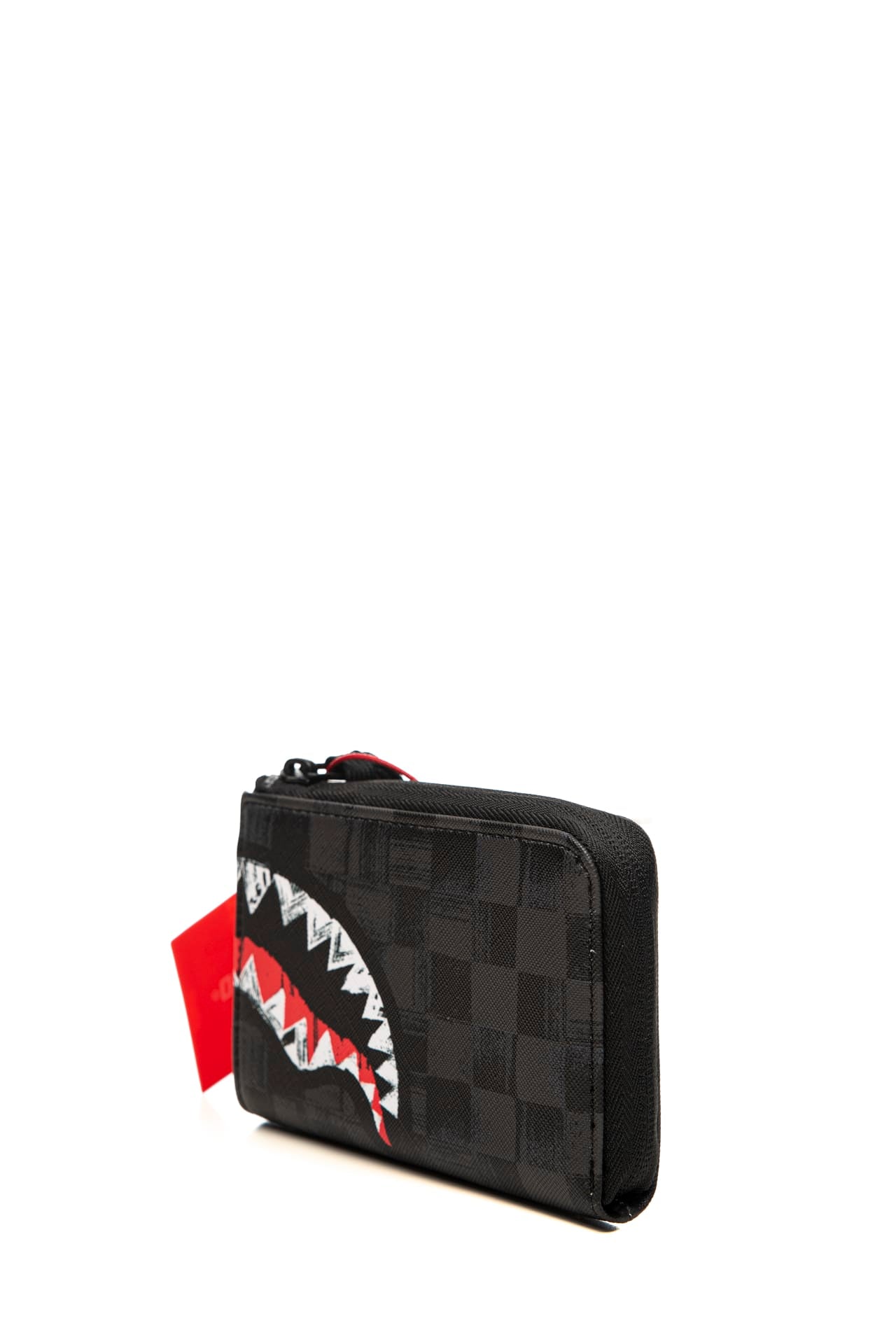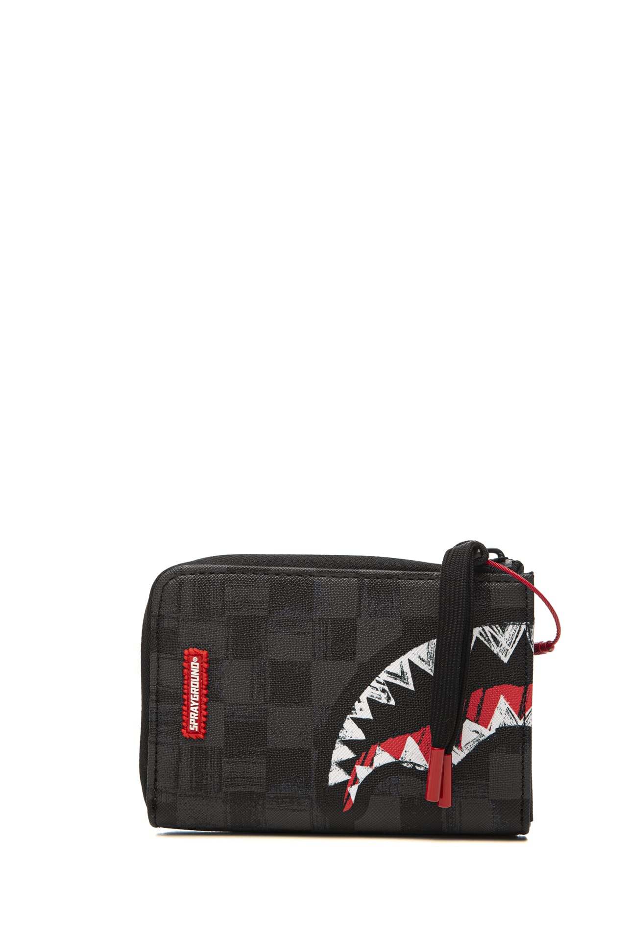 Portafoglio Sprayground Scribble Shark Wallet Unisex Stampa Disegno Scacchi Grigio Nera E Shark In Polivinile