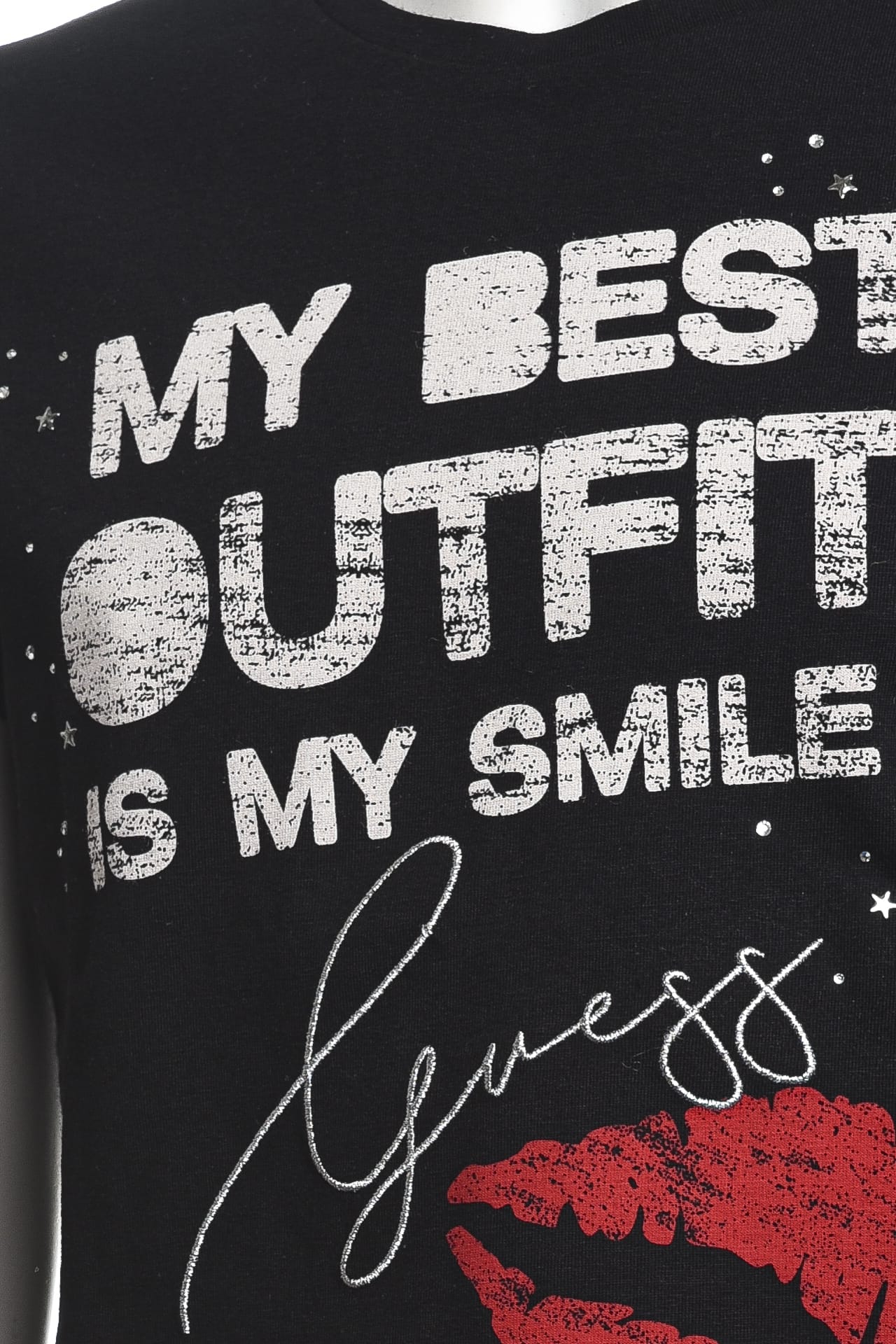T-Shirt Guess Cr Ss Mix Da Bambina Nera