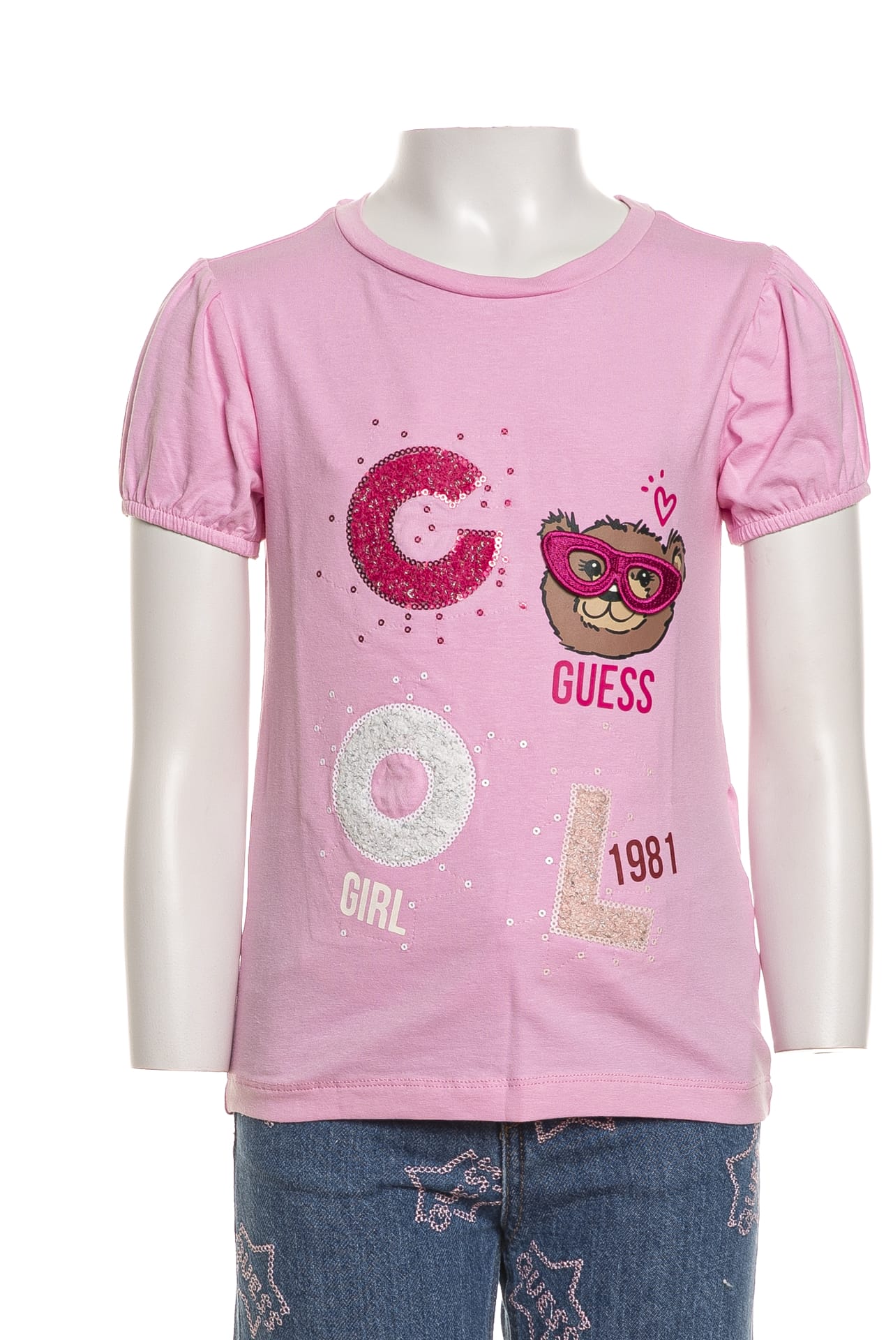 T-Shirt Guess Ss Cool Teddy Embro Ptch Da Bambina Rosa Barbie
