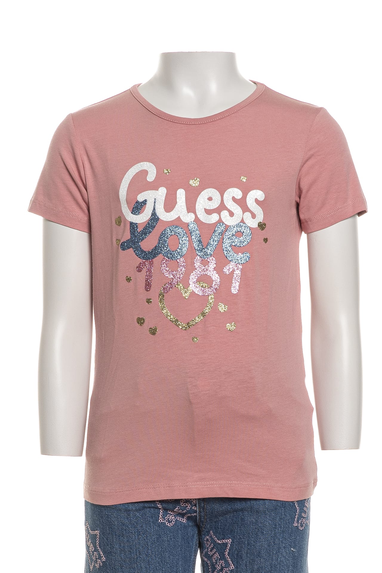 T-Shirt Guess Ss Shiny Love 1981 Da Bambina Rosa Salmone