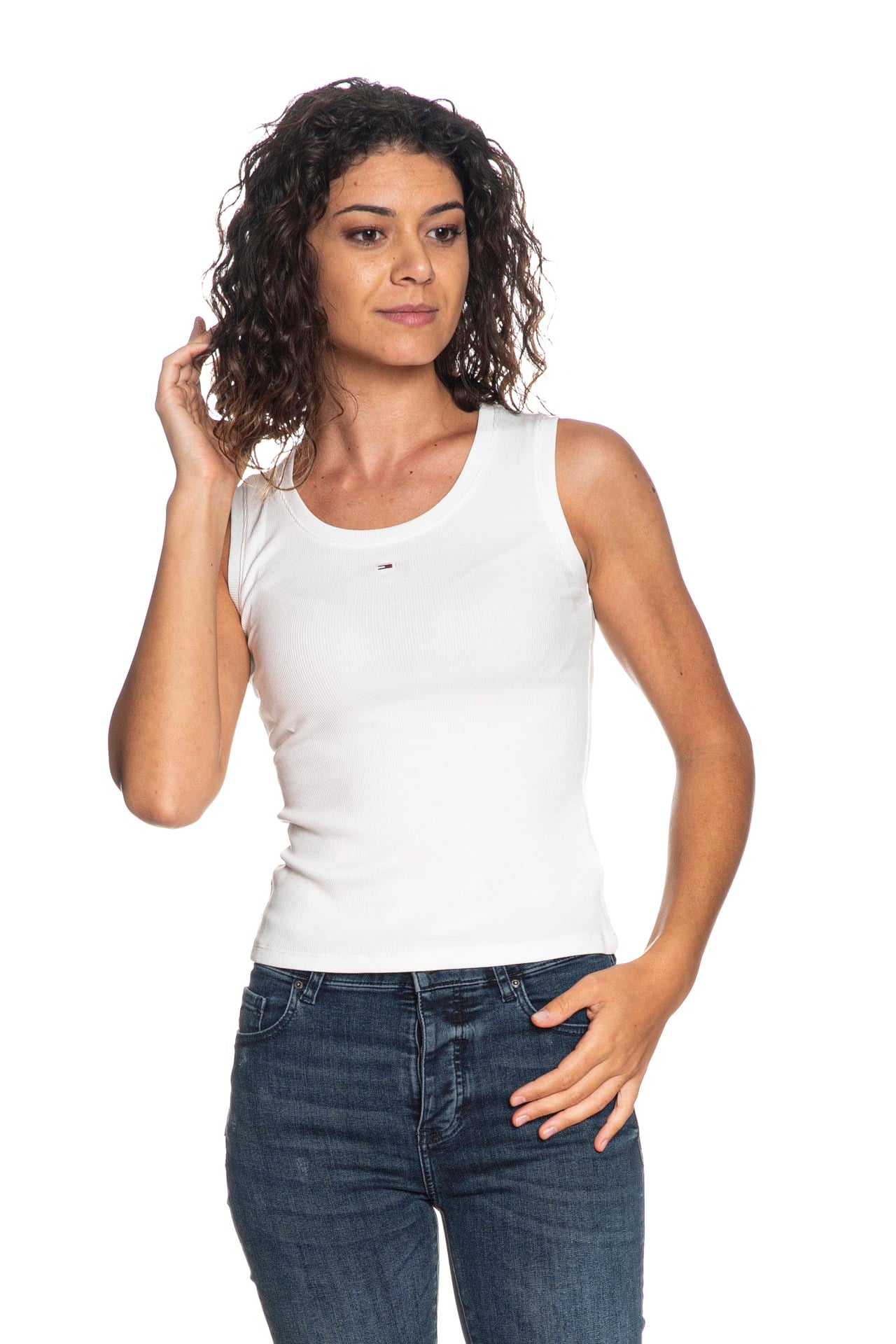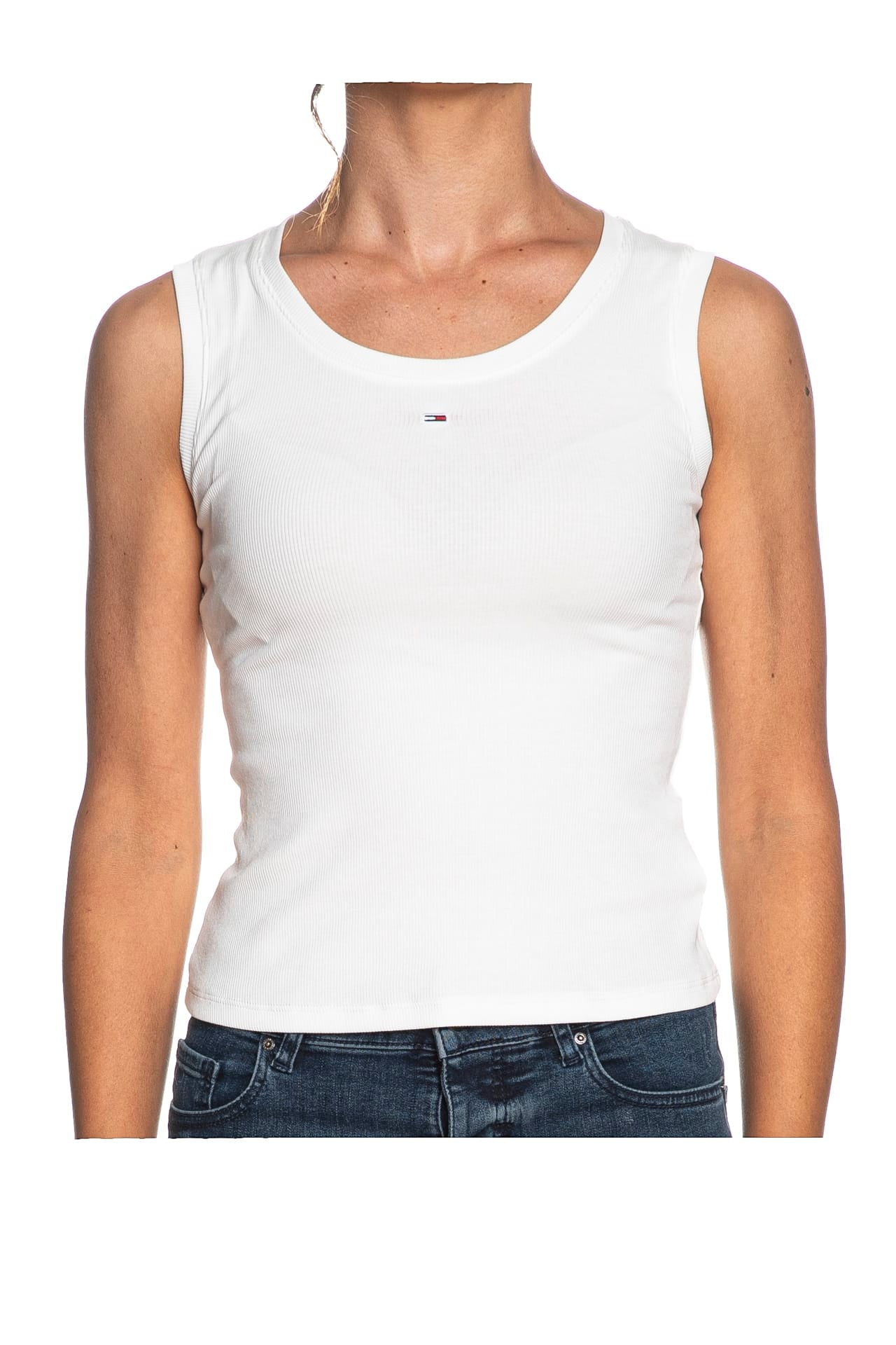Canotta Tommy Hilfiger Tjw Essential Rib Tank da donna in jersey a costine, a spalla larga con scollo tondo e micro flag ricamato a centro petto