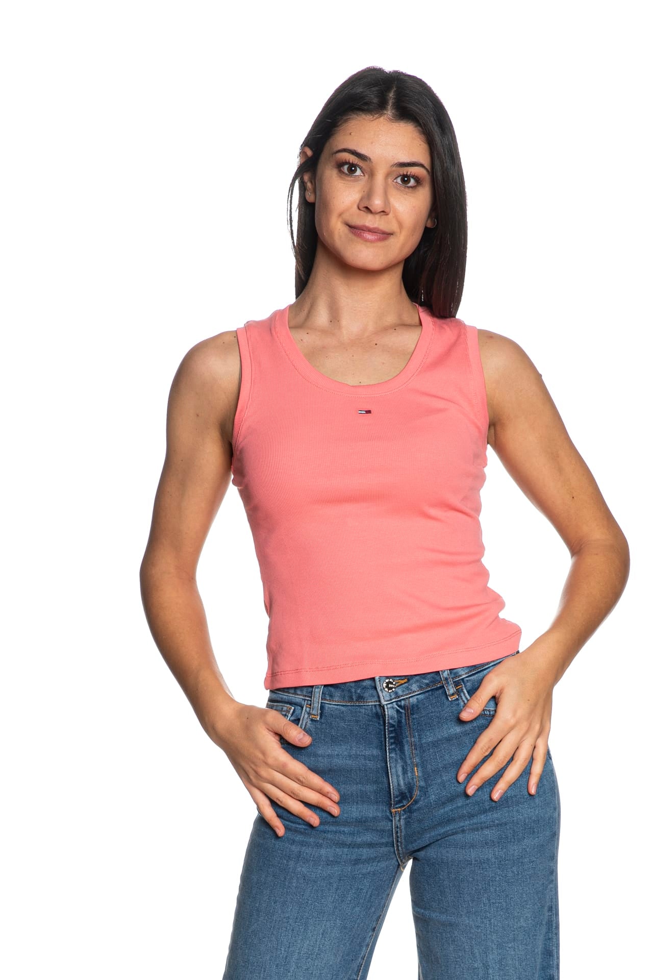Canotta Tommy Hilfiger Tjw Essential Rib Tank da donna in jersey a costine, a spalla larga con scollo tondo e micro flag ricamato a centro petto