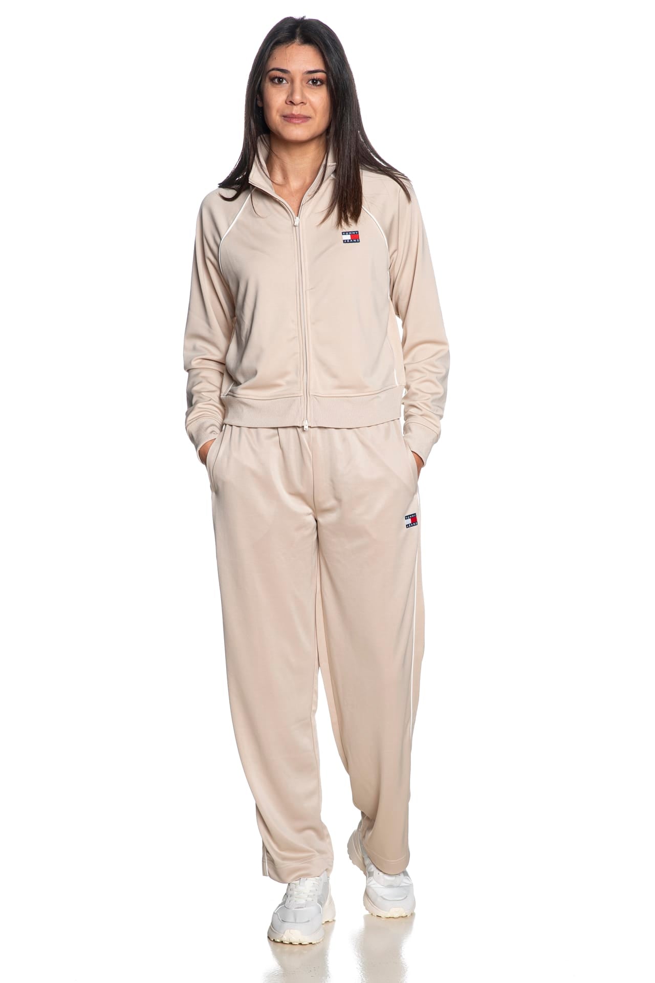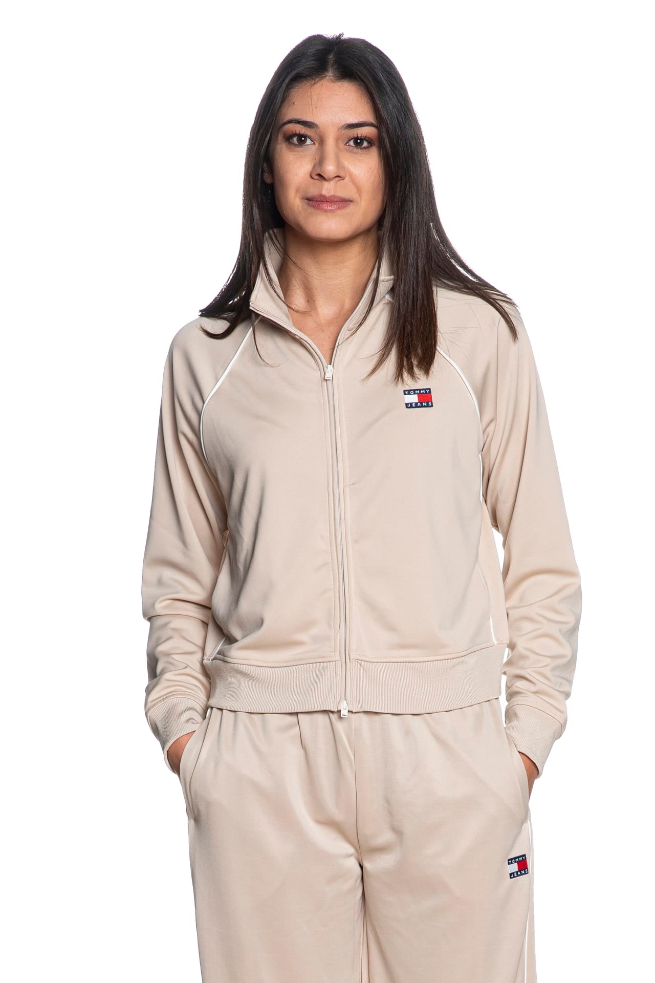 Felpa Tommy Hilfiger Bdg Track Jkt Da Donna Beige