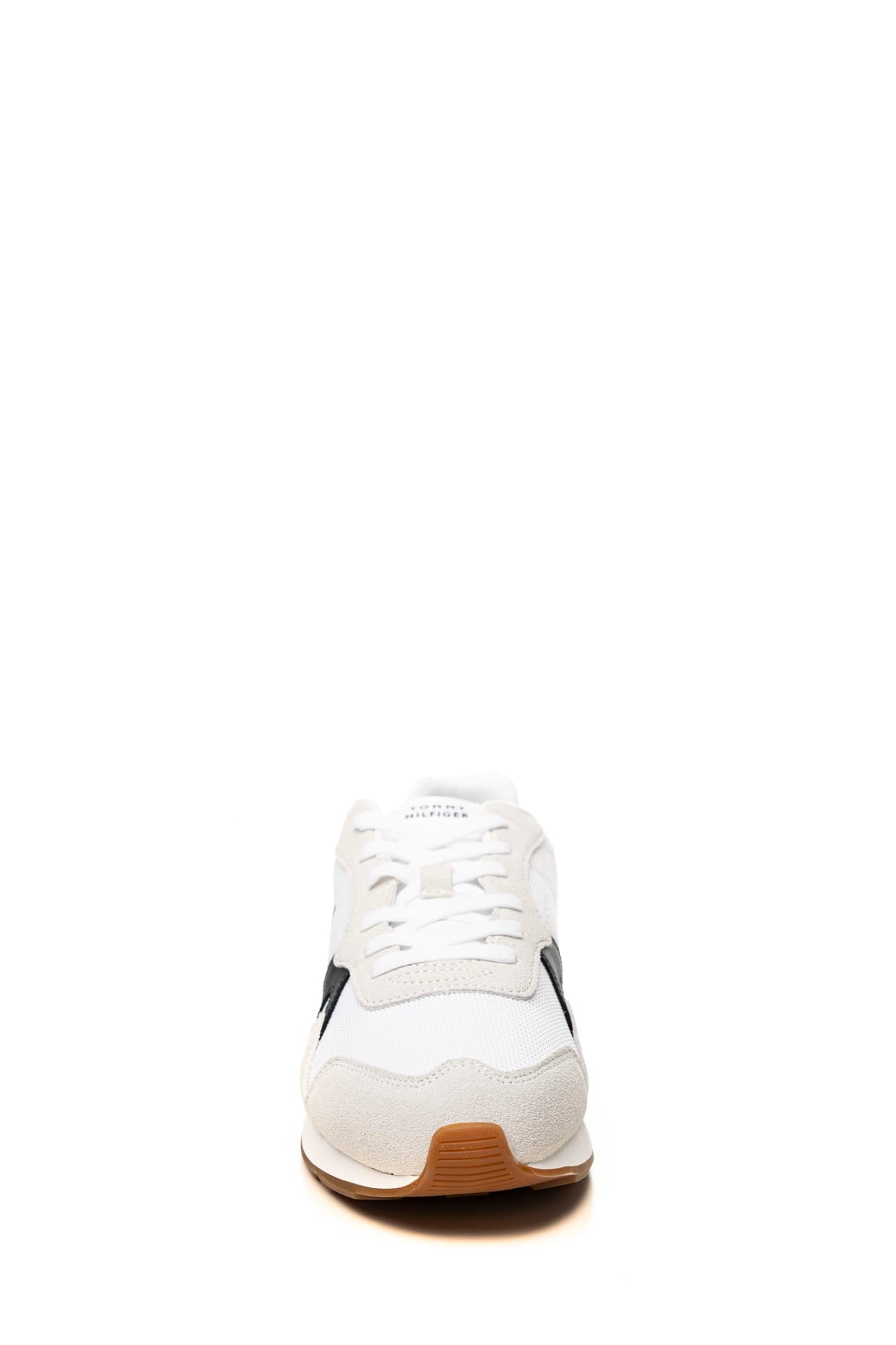 Scarpa Tommy Hilfiger Runner Icon Mix Da Uomo Bianco Ghiaccio Nero In Tessuto A Maglia E Pelle