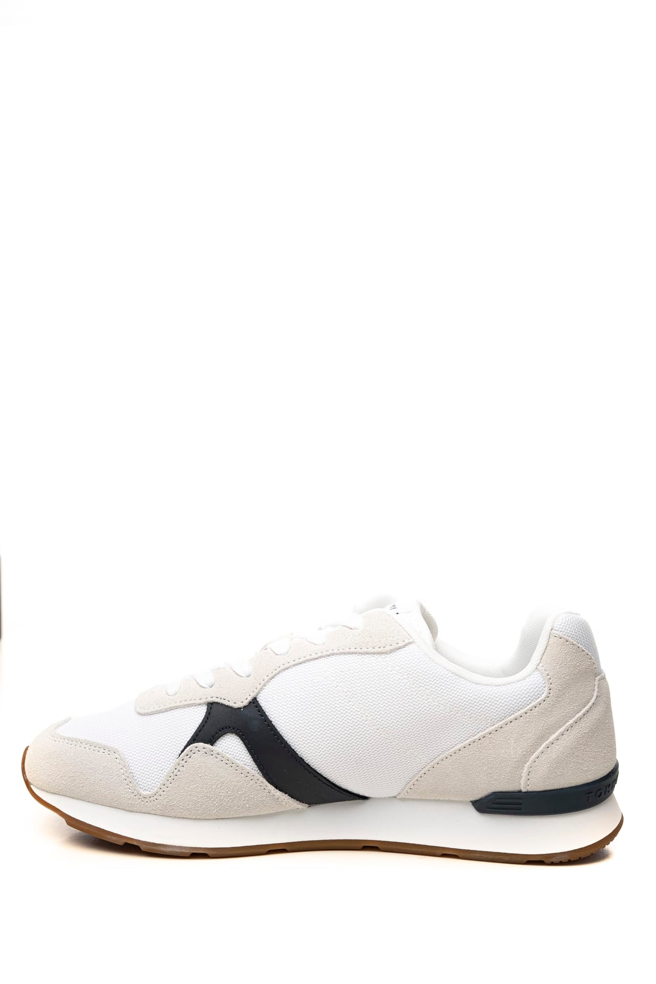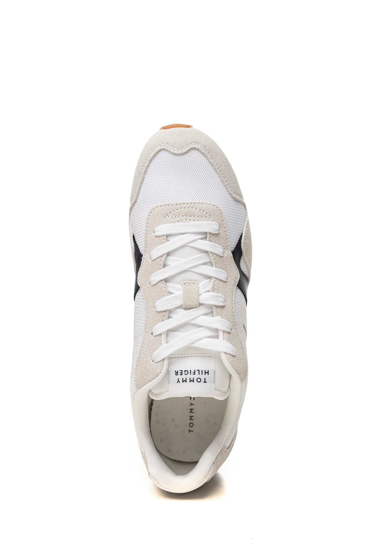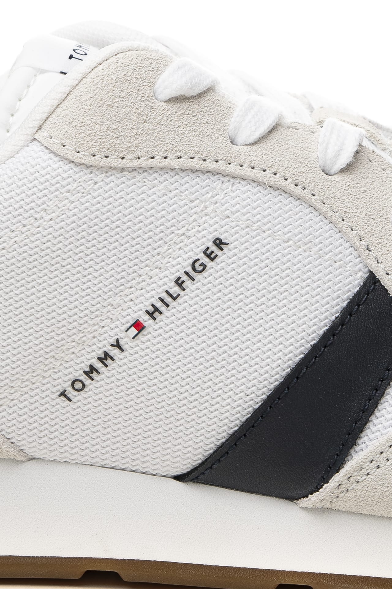 Scarpa Tommy Hilfiger Runner Icon Mix da uomo in tessuto a maglia di poliammide e inserti in pelle scamosciata e liscia a due colori, modello sneakers da training a punta tonda, con allacciatura a stringhe, logo lettering stampato sul laterale esterno, stabilizzatore, collare imbottito, intersuola in Eva e suola in gomma