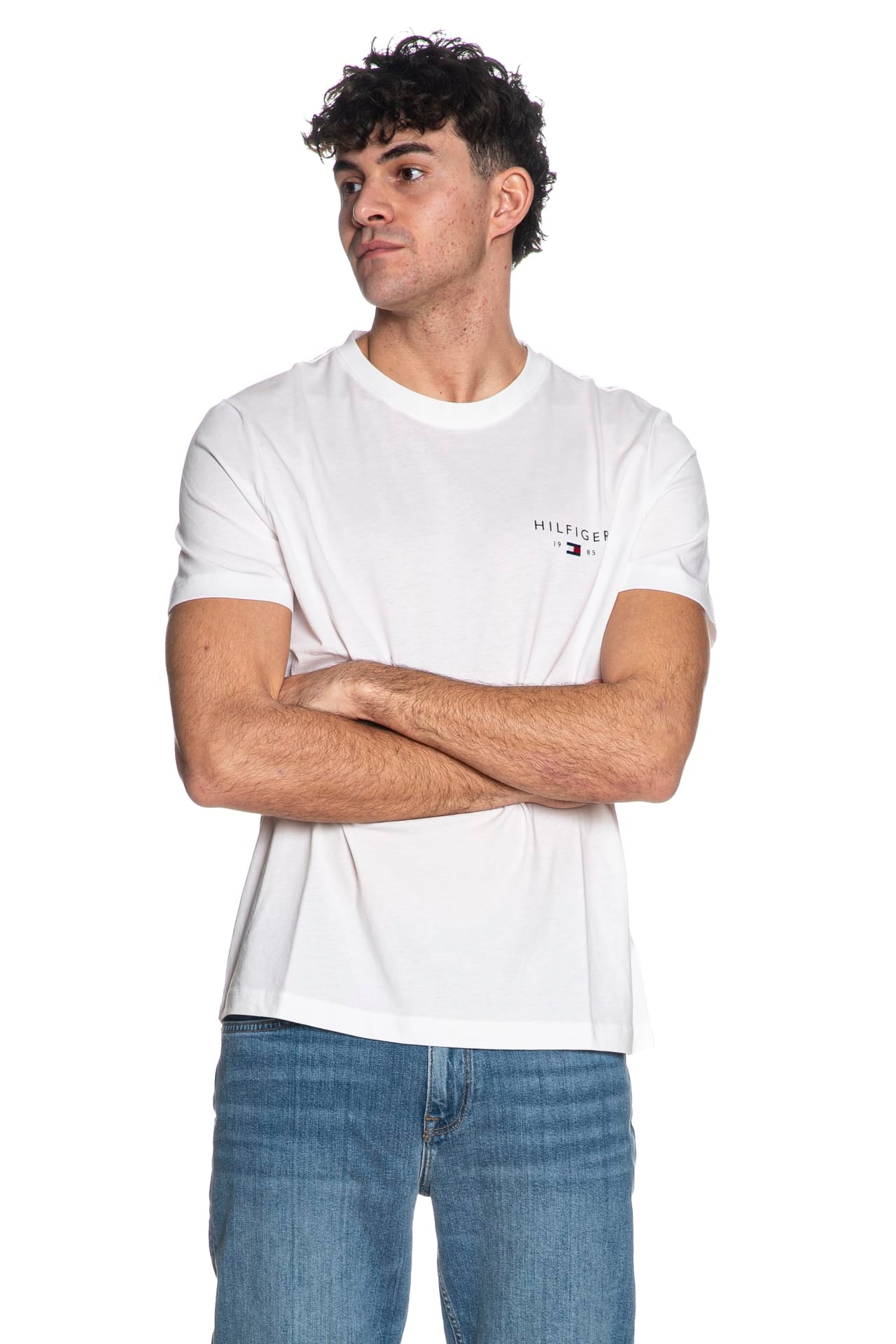 T shirt Tommy Hilfiger Brand Love Sm Hfg Tee da uomo in jersey di cotone, girocollo a manica corta, con logo stampato e piccolo flag istituzionale ricamato sul petto
