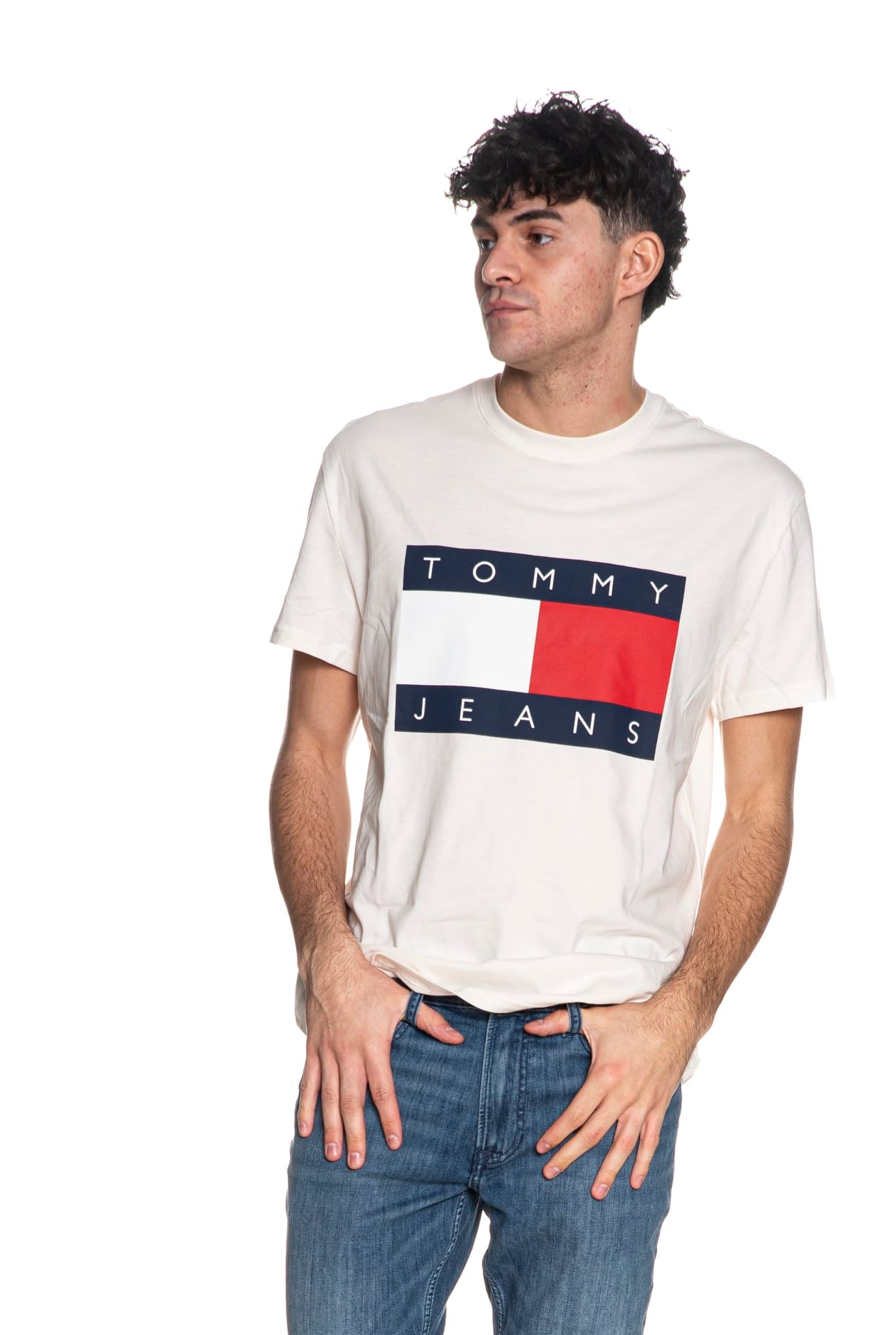 T shirt Tommy Hilfiger Reg Big Fl Tee da uomo in jersey di cotone, regular fit girocollo a manica corta, con macro flag istituzionale in stampa gommata