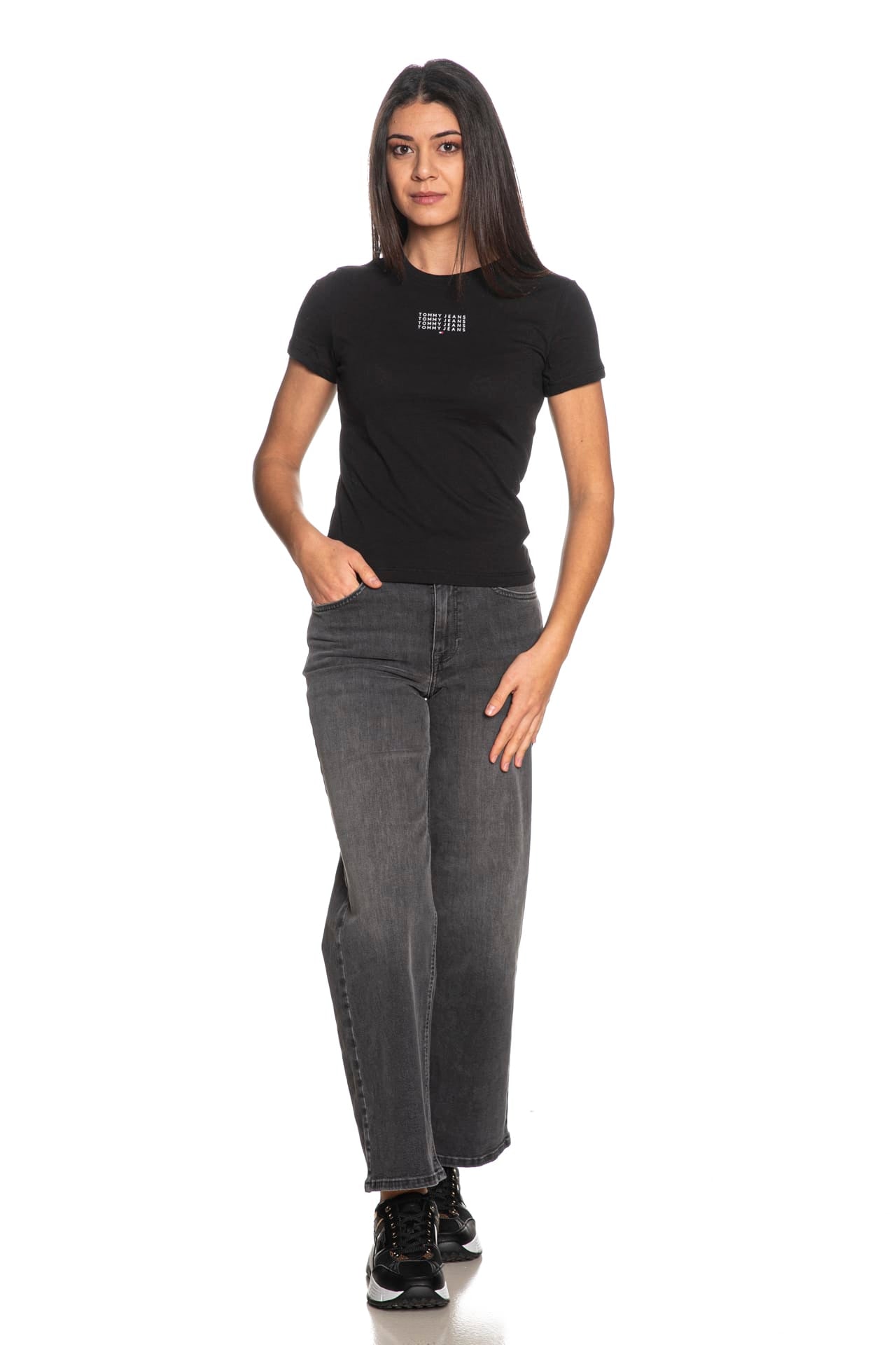 T Shirt Tommy Hilfiger Sl Multi Linear Ss Tee Da Donna Nera