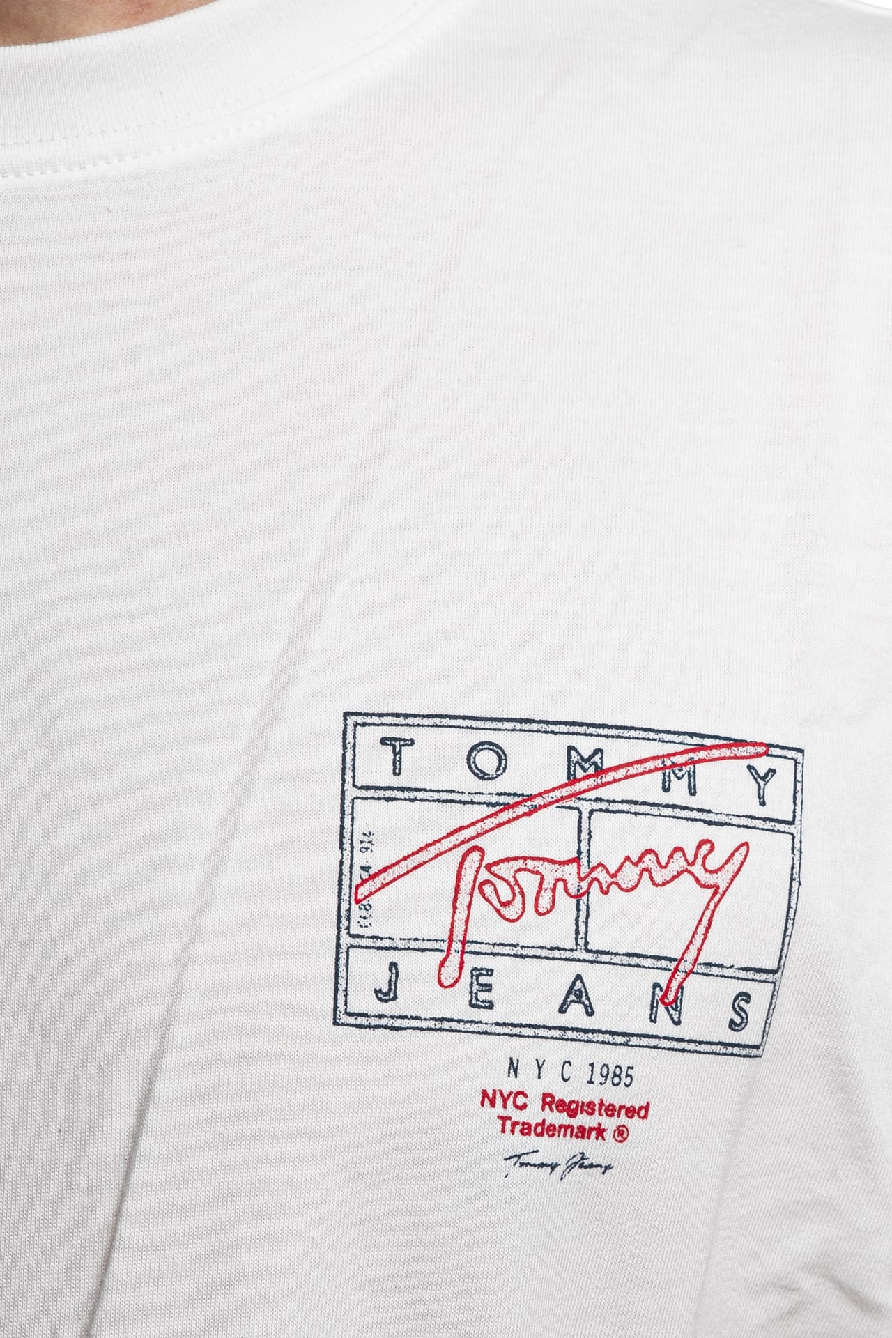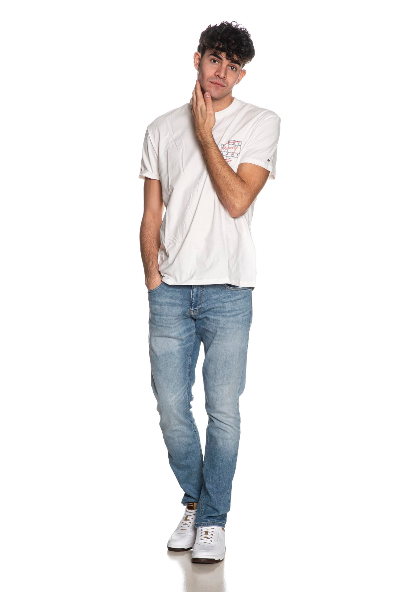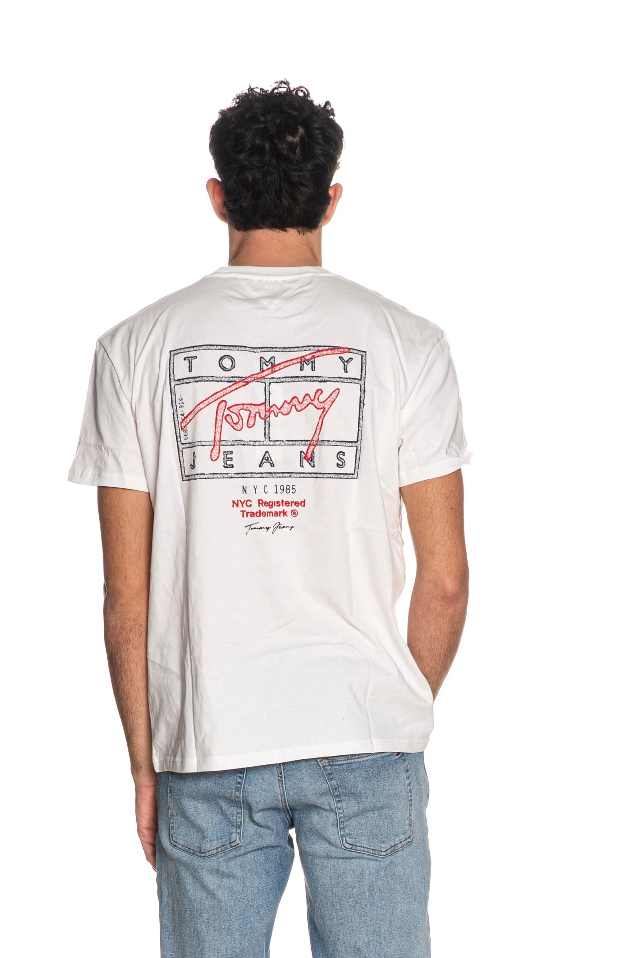 T shirt Tommy Hilfiger Tjm Reg Sign Spray Text Tee da uomo in jersey di cotone, regular fit girocollo a manica corta, con logo firmato su flag stampato outline a due colori sul petto