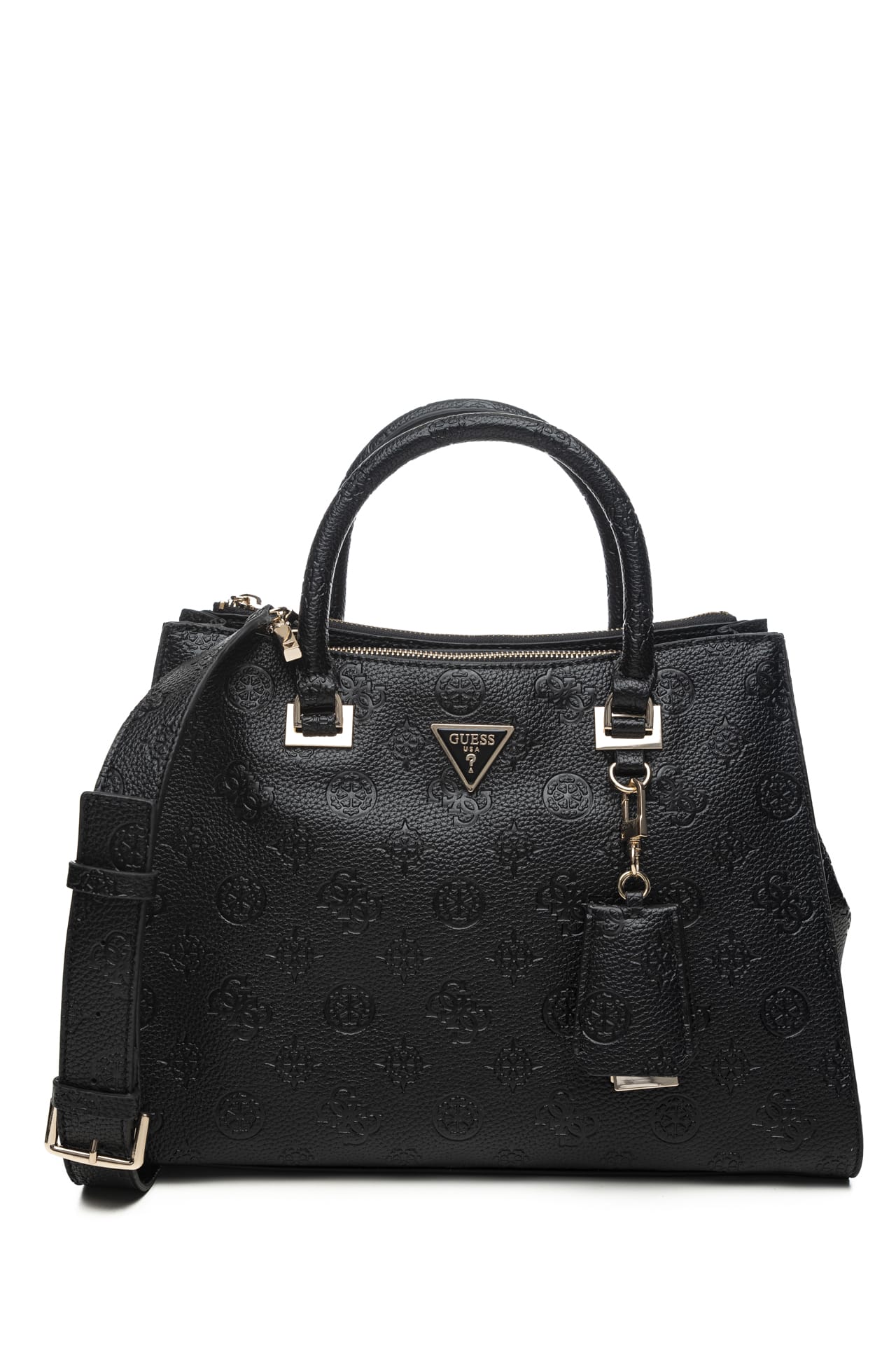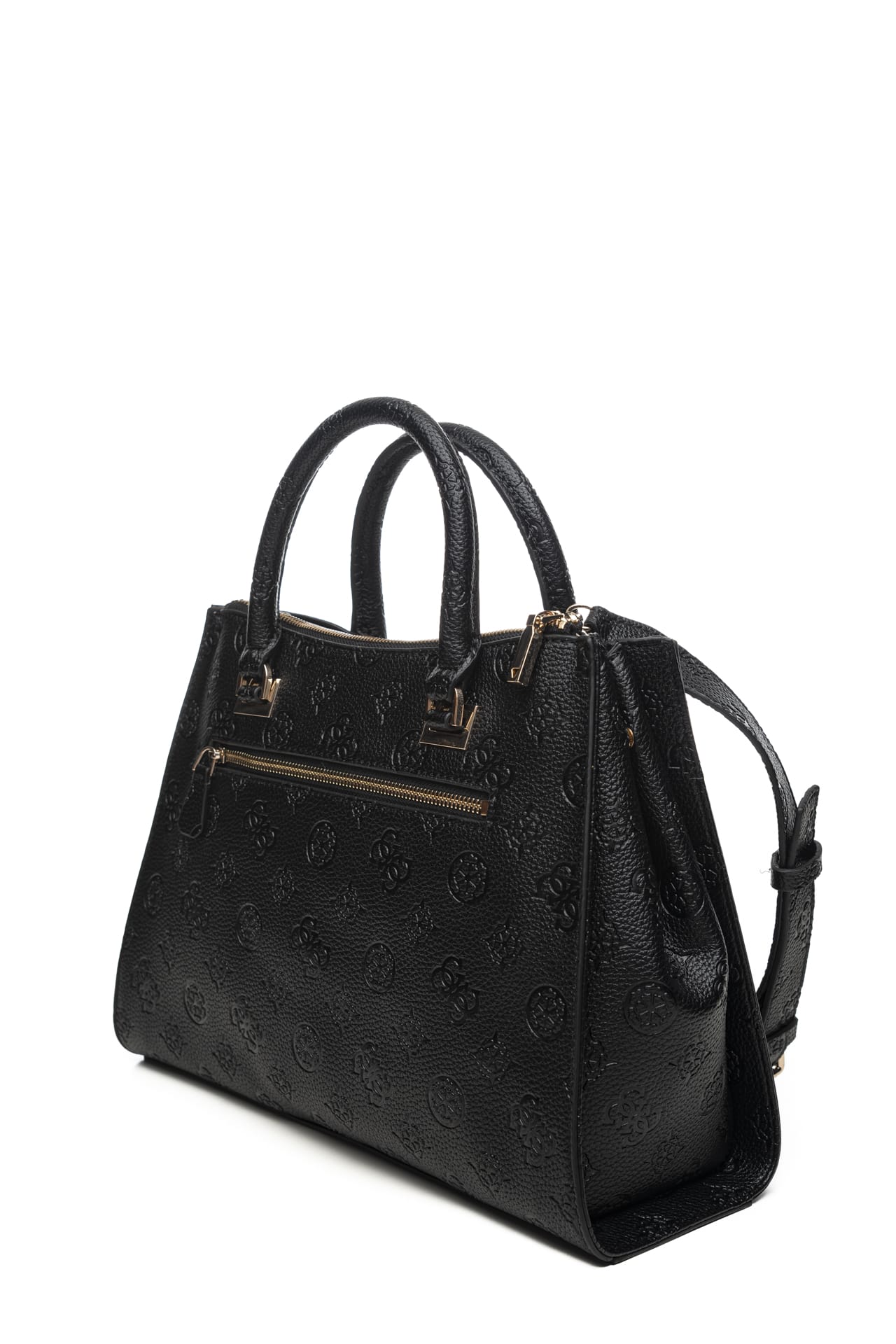 Borsa Guess Cresidia II da donna in poliuretano martellato stampato debossing a loghi 4G Peony tono su tono, modello satchell a mano,con vano centrale e laterale a busta chiusi da zip, placca logo in metallo dorato e smalto sul lato anteriore, tasca posteriore a filo con zip, manici corti rigidi con charms agganciati e tracolla regolabile in lunghezza e rimovibile Misure: 35x13x25 cm