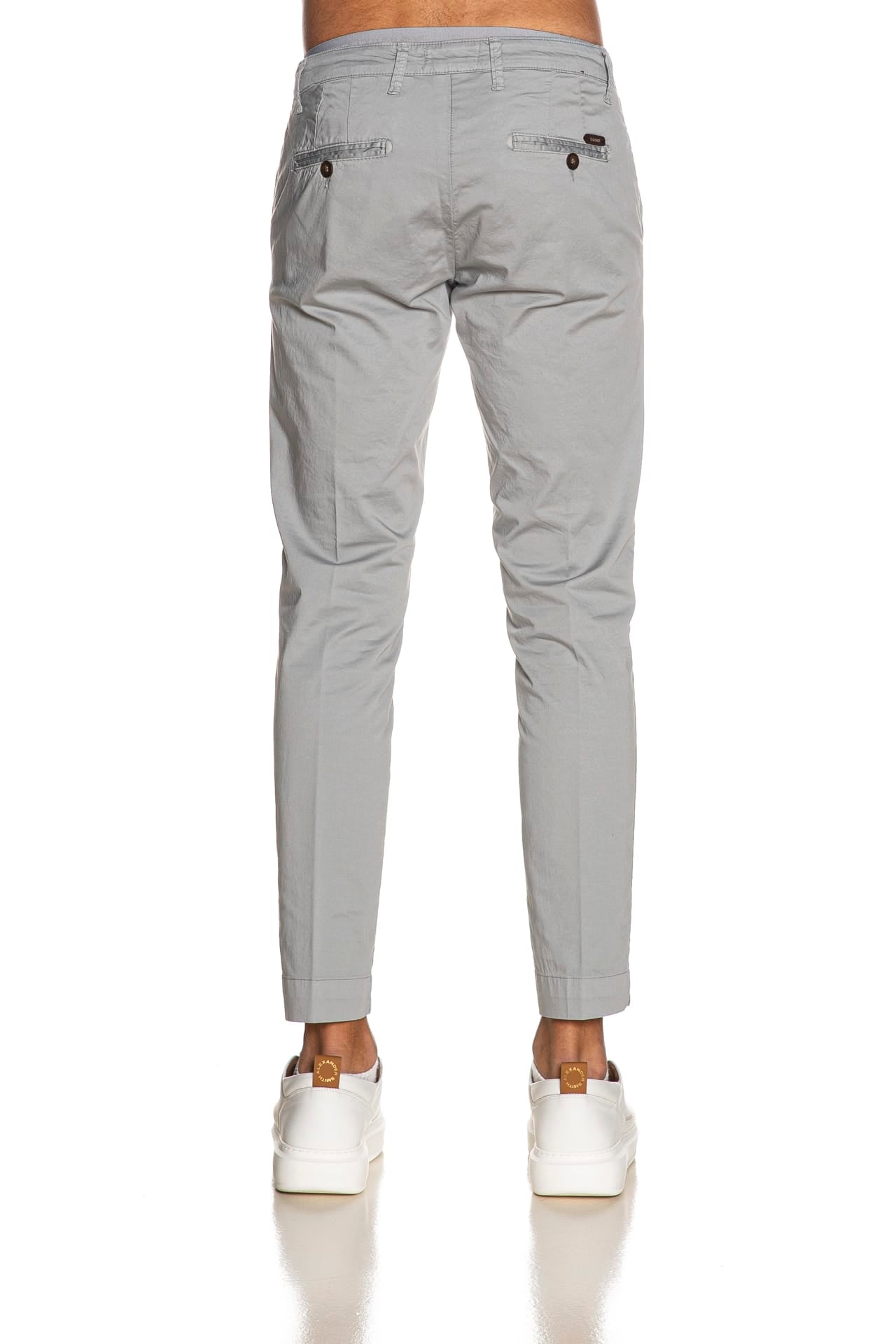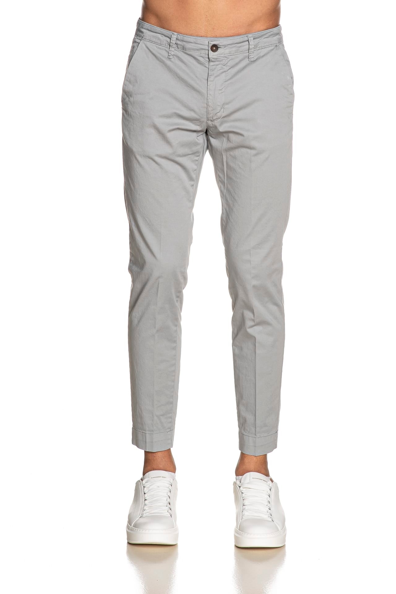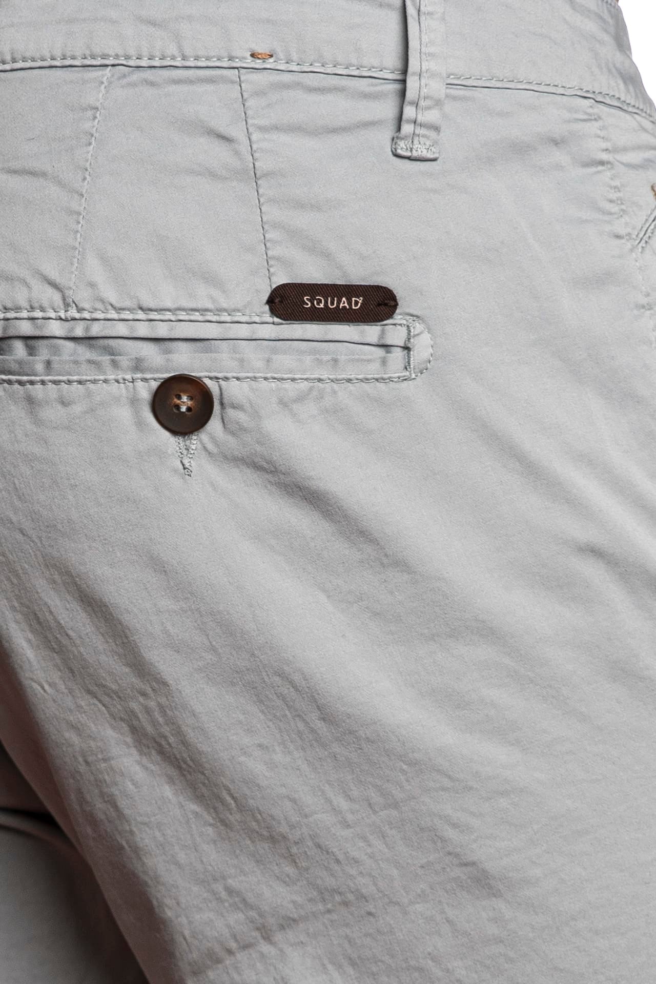 Pantalone Squad2 Napoli da uomo in rasatello elasticizzato di cotone, modello chino slim fit, con chiusura zip a scomparsa, tasche america frontali, a filo con bottone posteriori, taschino portamonete inclinato e piccola etichetta logo in tessuto applicata sul retro