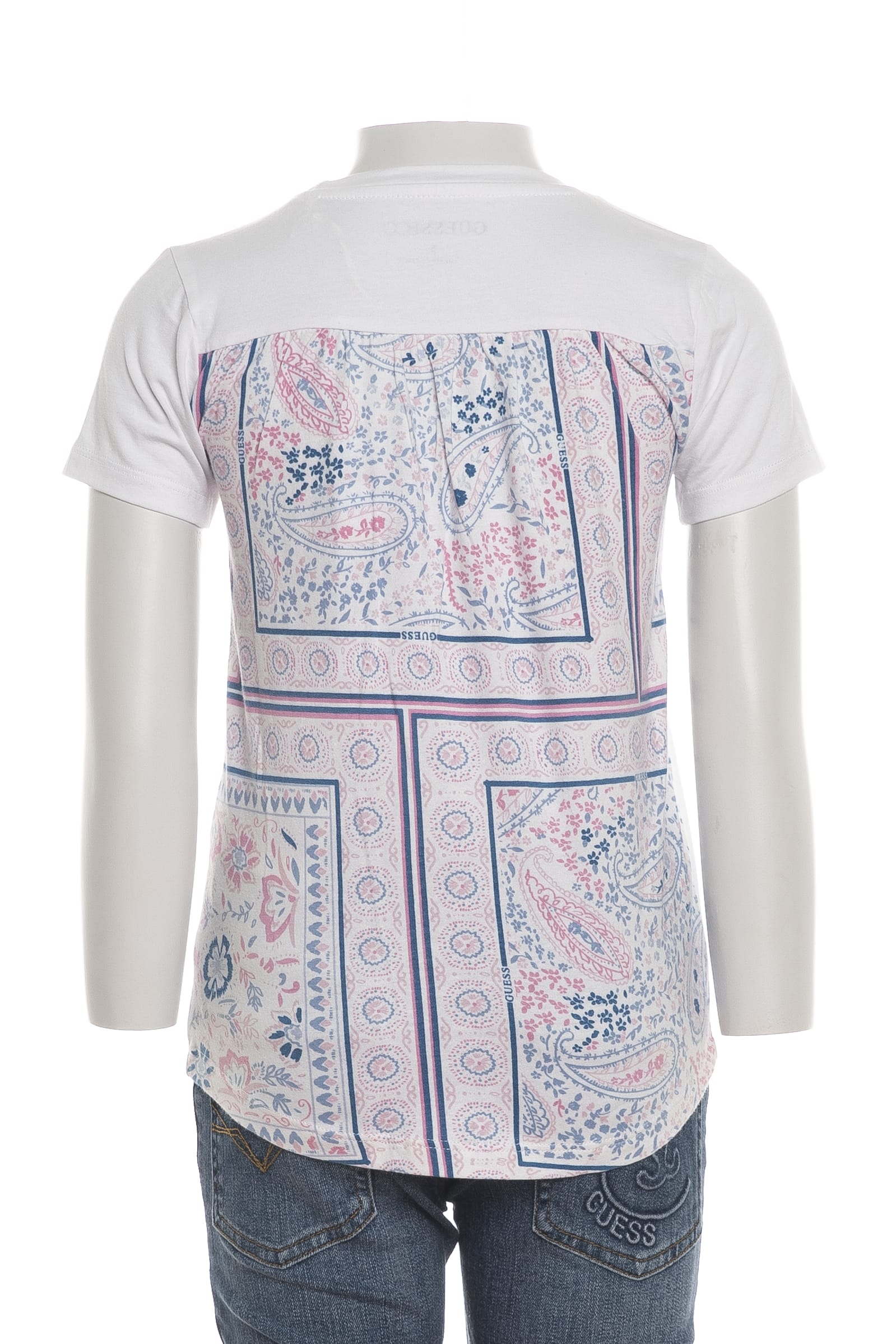 T Shirt Guess Flowers Squares Da Bambina Bianca Fantasia A Riquadri E Motivo Floreale Bianco Rosa Blu
