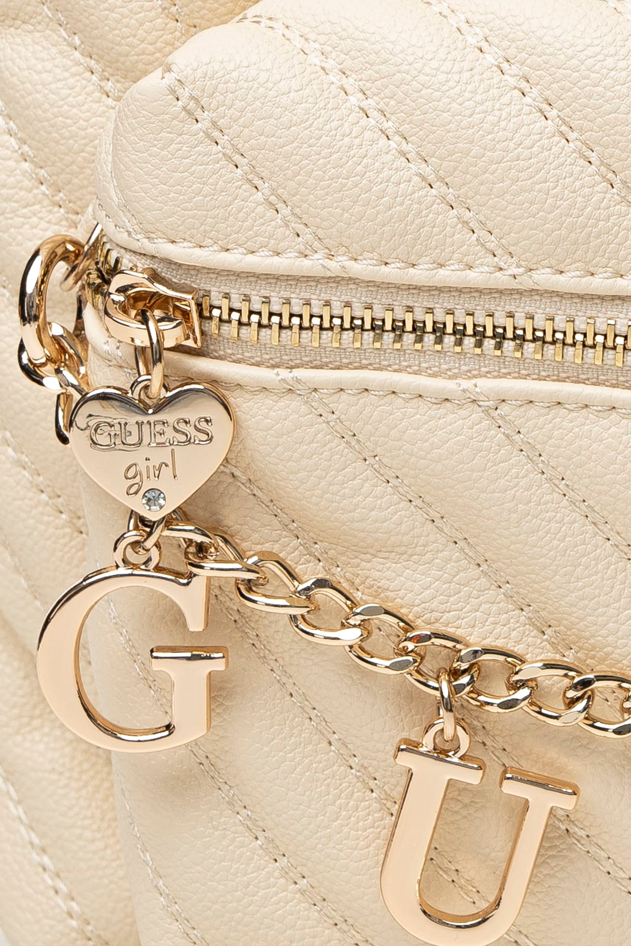 Zaino Guess Girl Letter Backpack 7Y Up da bambina in poliuretano trapuntato a V, small, con logo e catena con lettere logo agganciata alla tasca esterna in metallo dorato, chiusura zip, manico superiore e spallacci imbottiti regolabili in lunghezza Misure: 31x9/13x22 cm